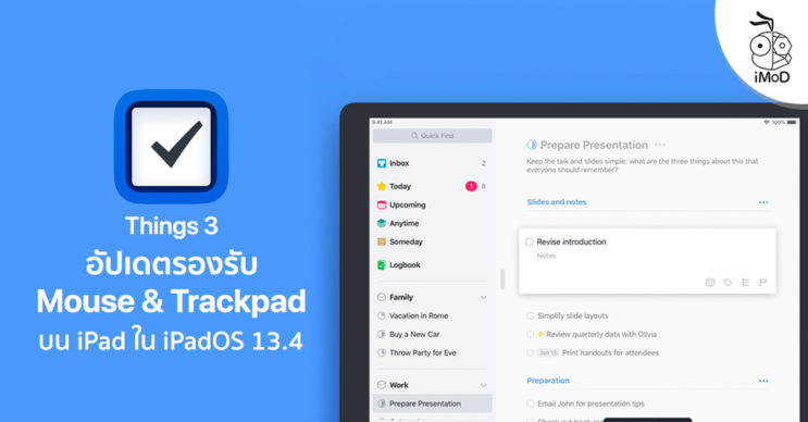 แอปจัดการงาน Things 3 อัปเดตเวอร์ชัน 3.12.2 รองรับการทำงานร่วมกับเคอเซอร์เมาส์และแทร็คแพดบน iPad แล้ว ใน iPadOS 13.4 ขึ้นไป