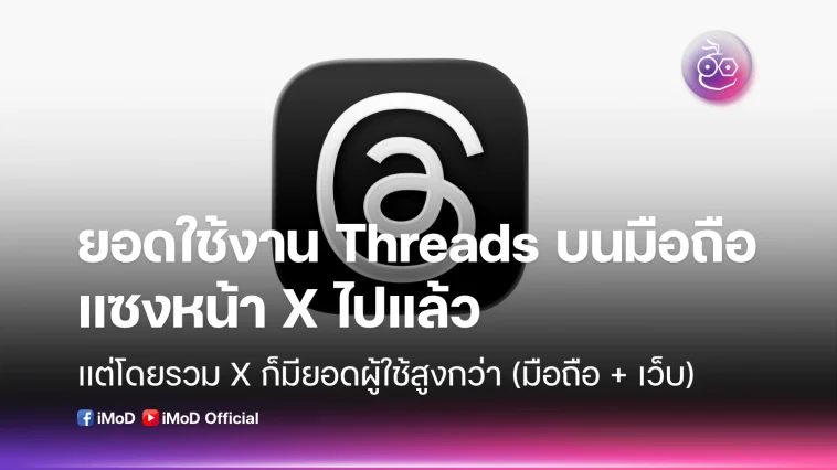 มีรายงานว่ายอดผู้ใช้แอป Threads บนมือถือแซงหน้า X (Twitter เดิม) ไปแล้ว ซึ่งเป็นแอปที่มีลักษณะการทำงานใกล้เคียงกัน