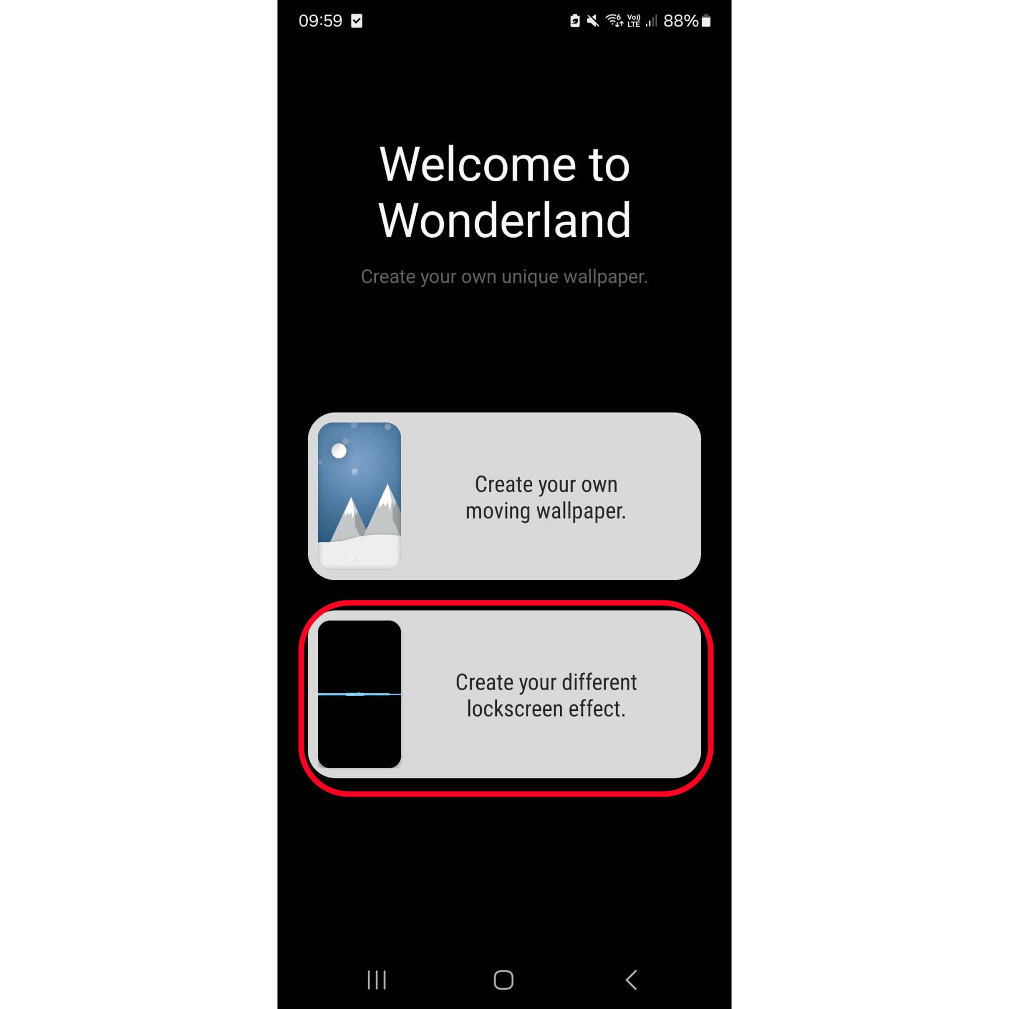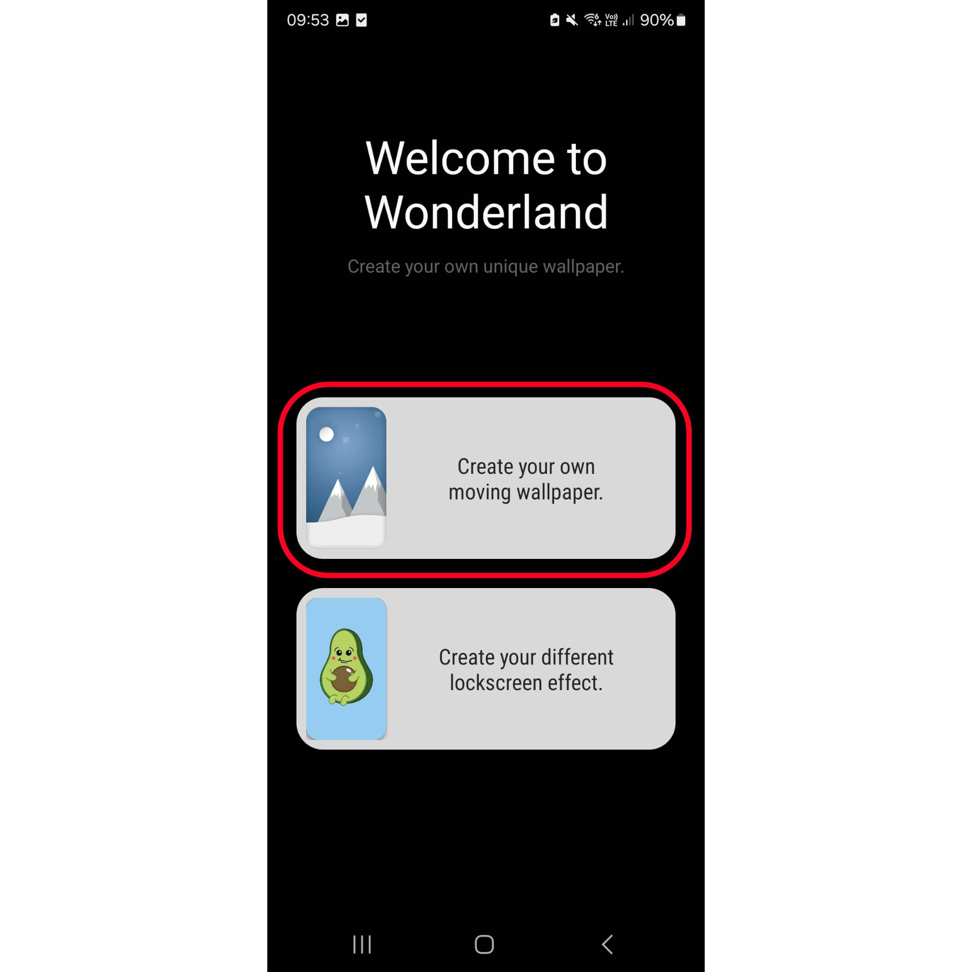 พอโหลดเสร็จให้กดเปิด ตัวแอปก็จะให้เราสร้าง Wallpaper ได้ 2 แบบนะ มาเริ่มที่ตัว “Create your own moving wallpaper”