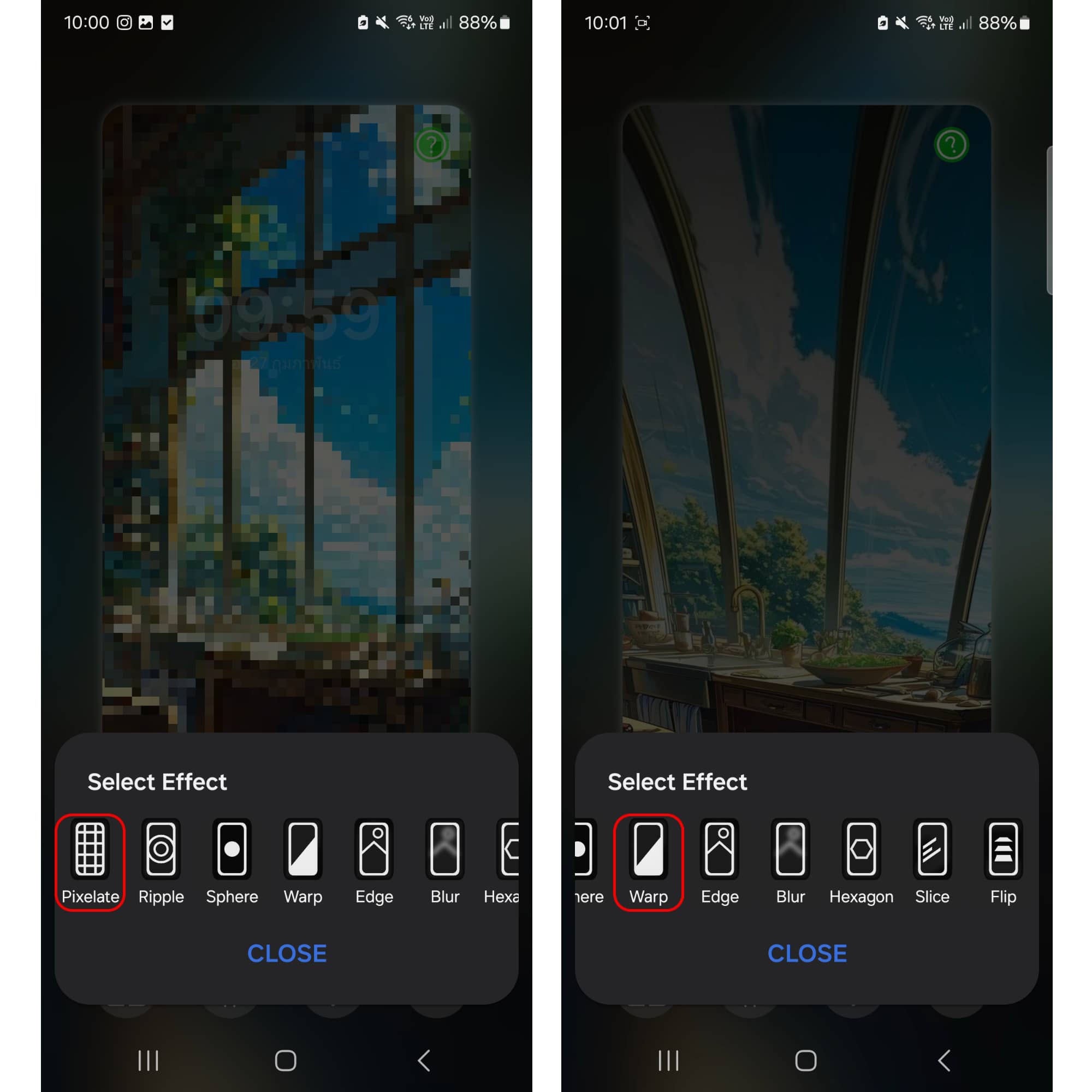 เลือกเอฟเฟกต์ตามชอบได้เลย พอเราเลือกแล้ว เวลาเราเปิดหน้าจอโทรศัพท์ก็จะมีเอฟเฟกต์เปิดหน้าจอแสดงขึ้นมา เก๋สุด ๆ!