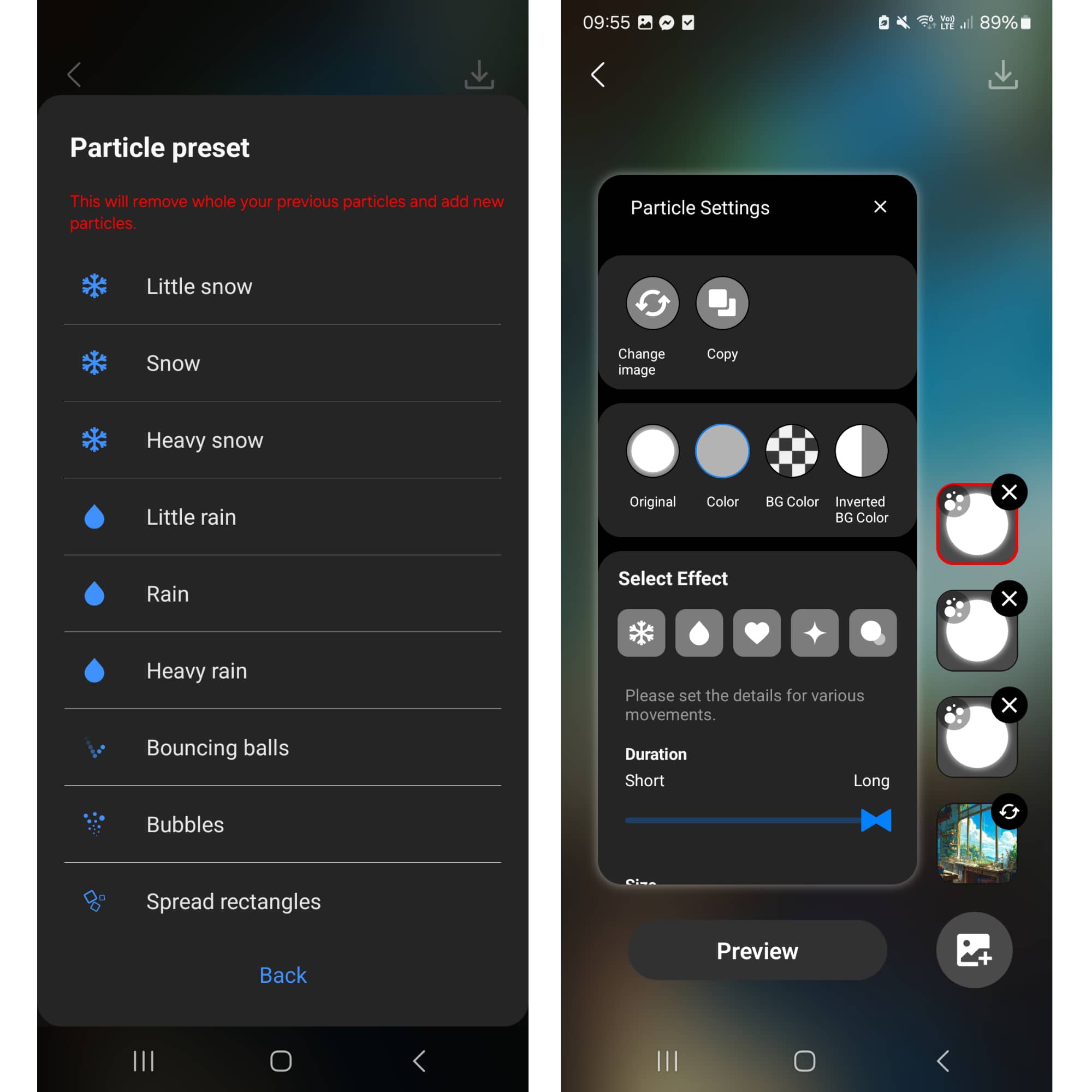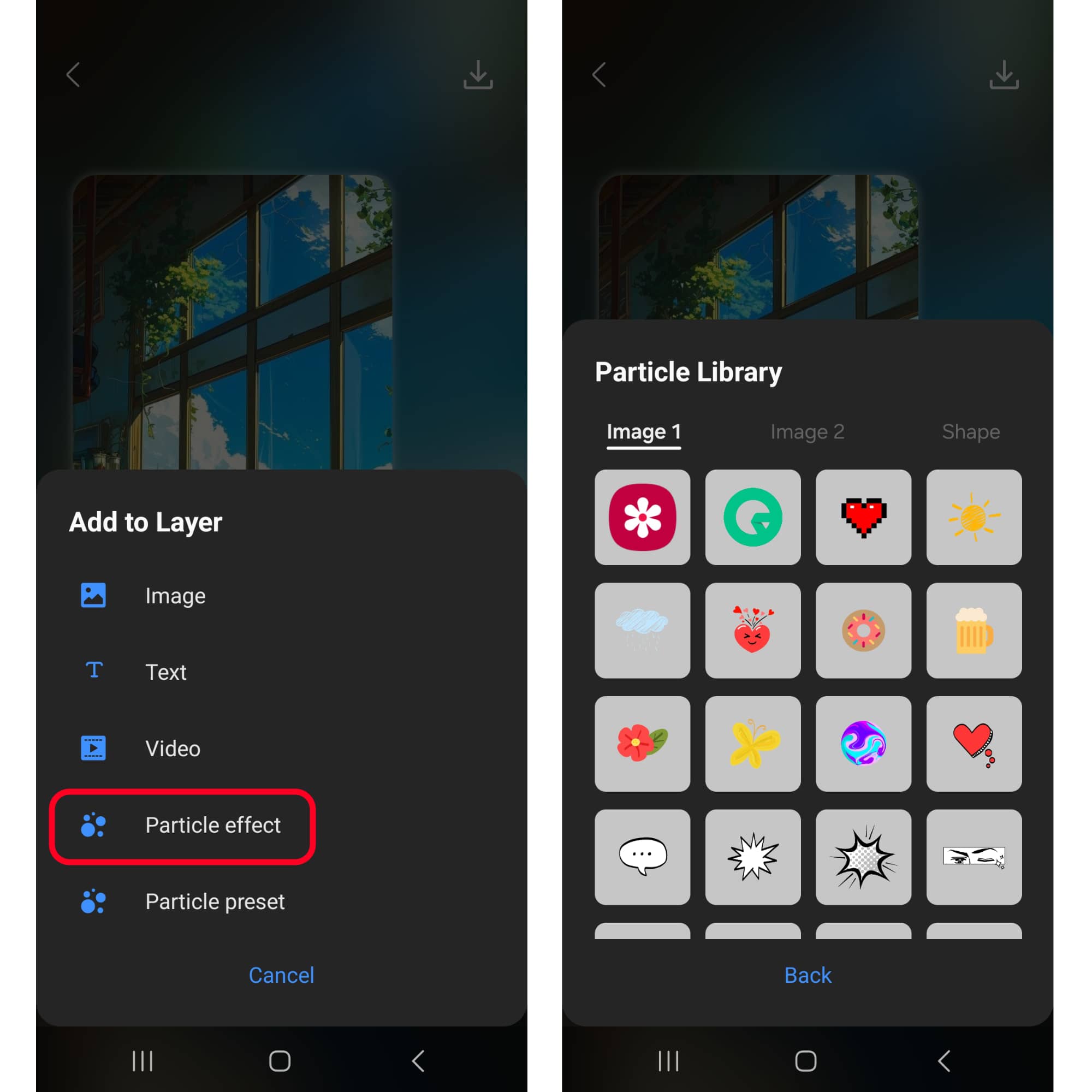 เลือก “Particle effect” แล้วเลือก Emoji ที่ต้องการตกแต่งภาพพื้นหลังได้เลย