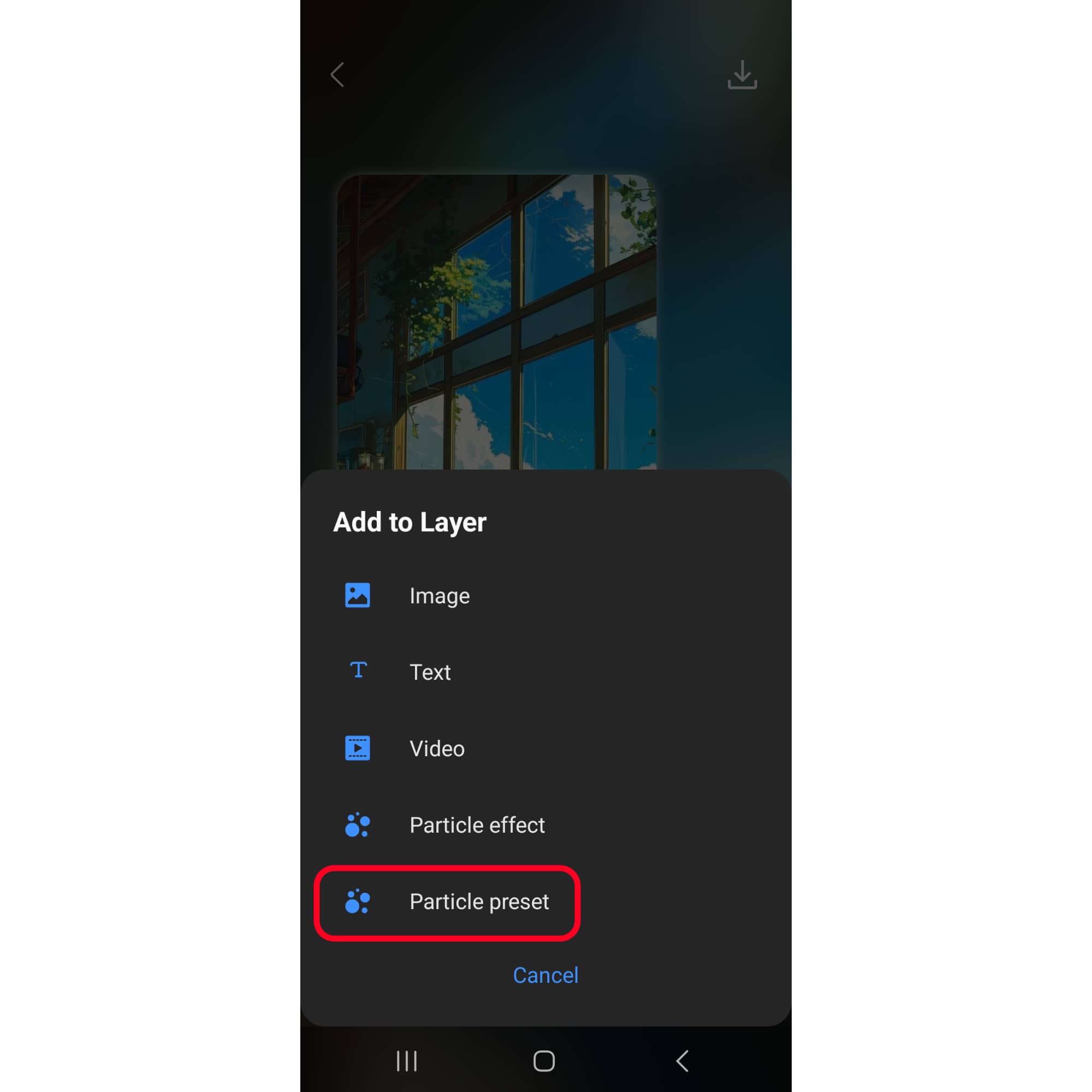 เลือก “Particle preset”