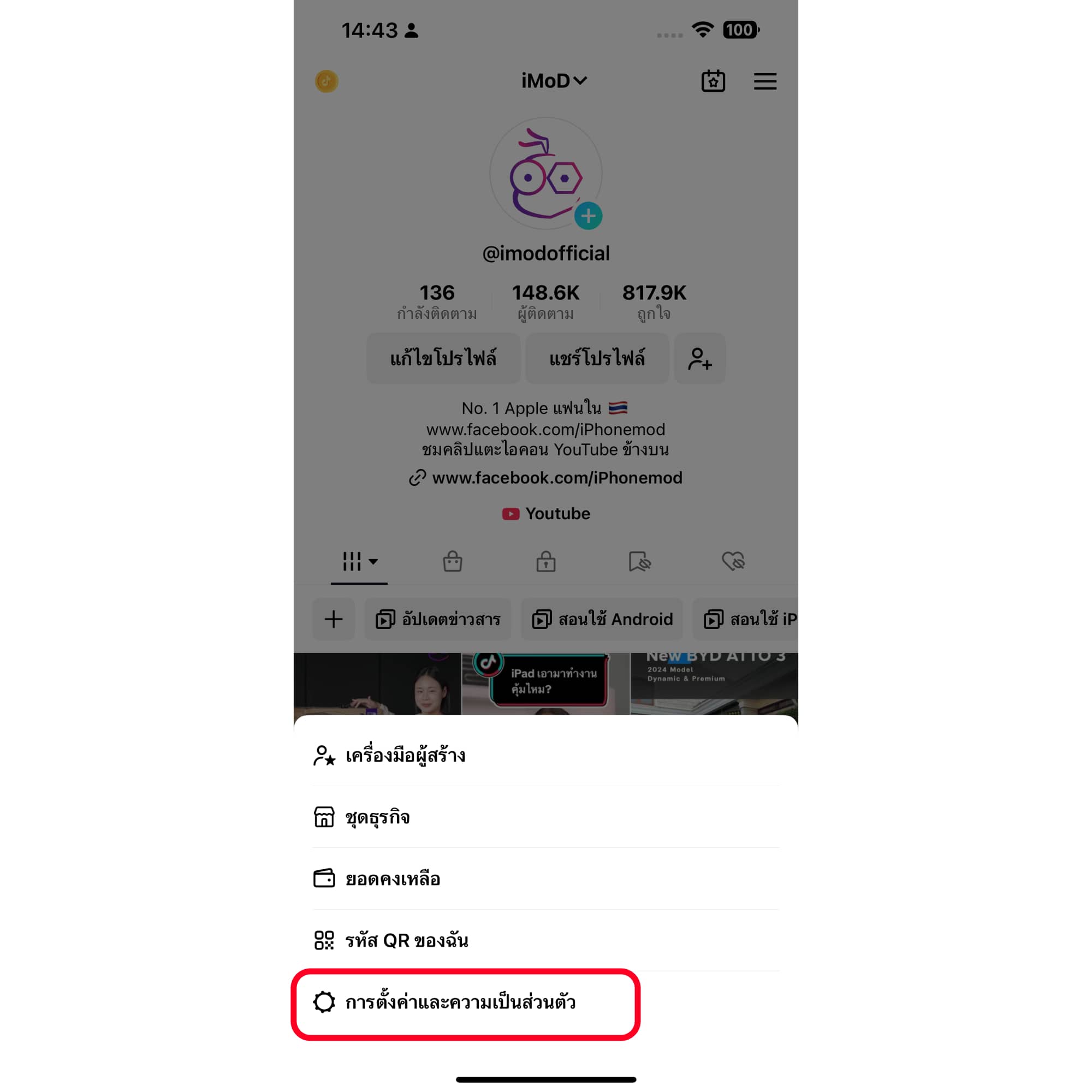 มาที่โปรไฟล์ กด “ขีดสามขีด”