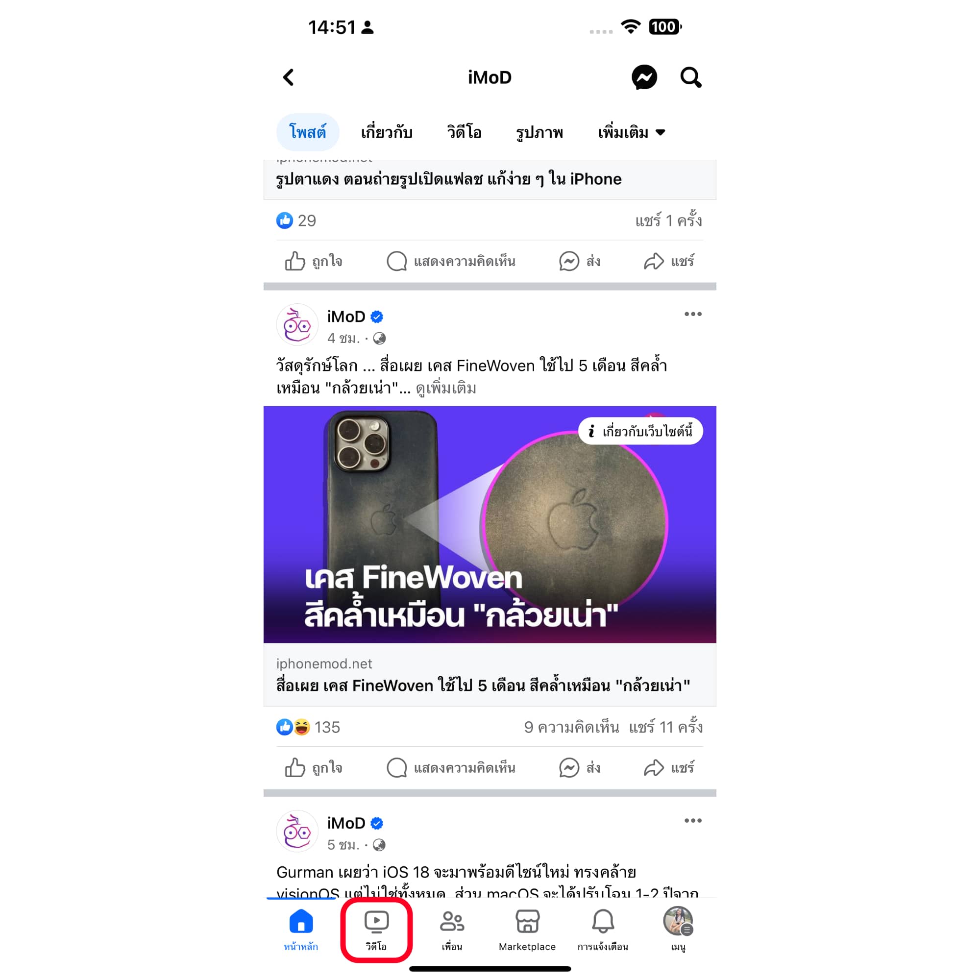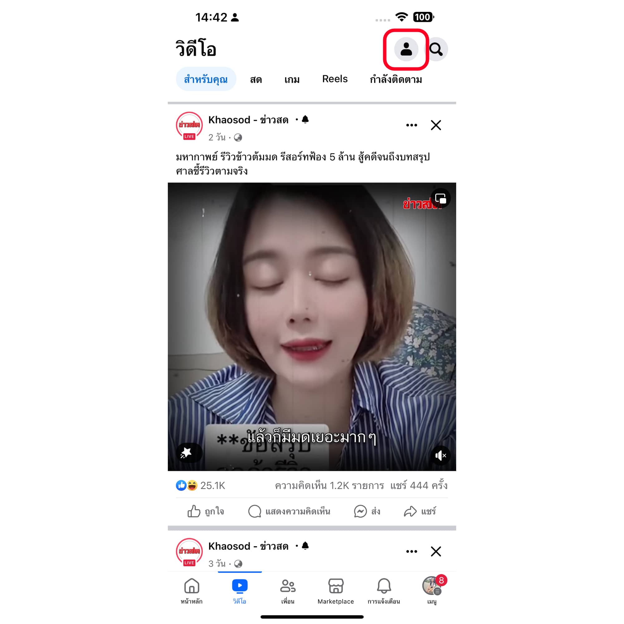 มาที่หน้าเฟสจากนั้นกด “วิดีโอ”