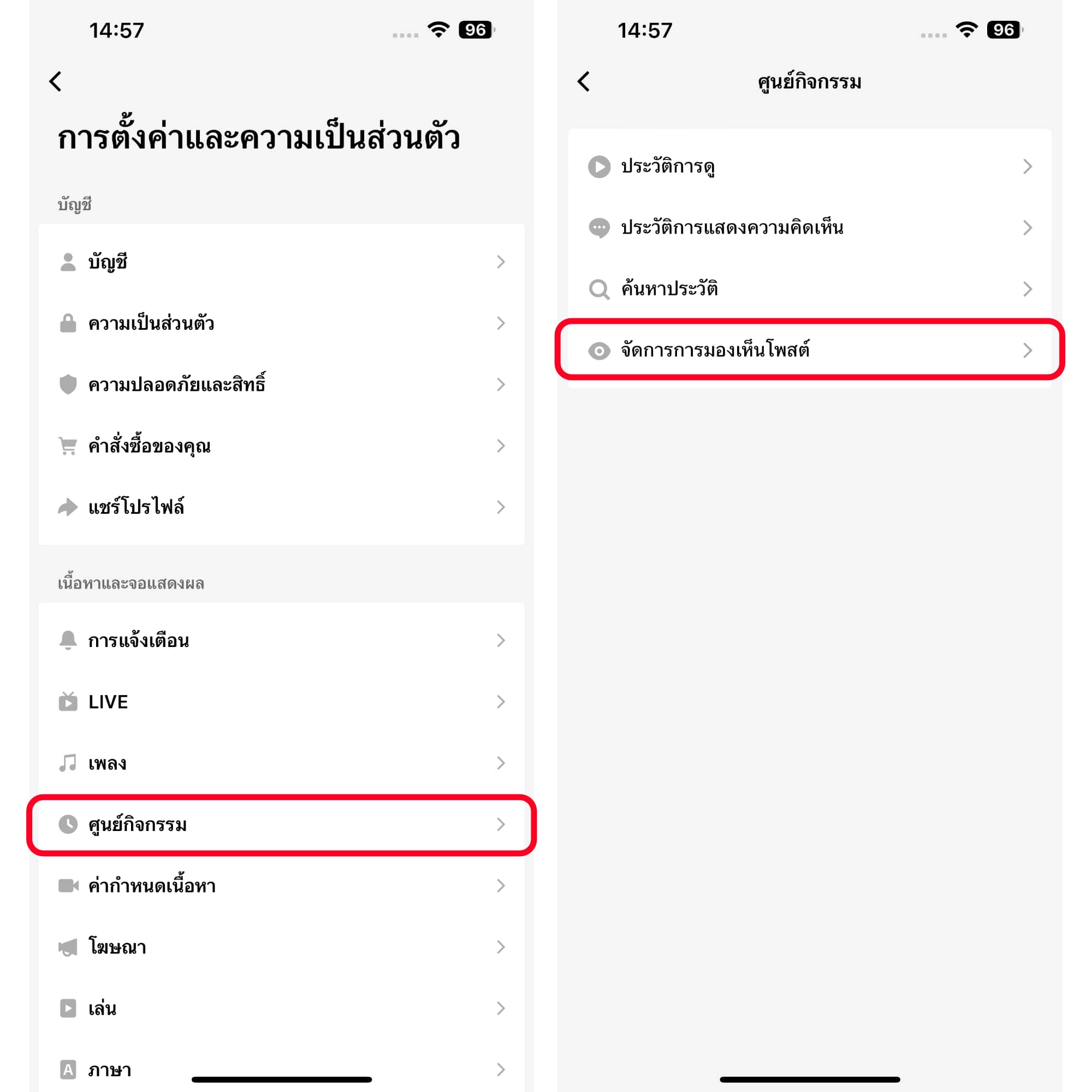ศูนย์กิจกรรม > จัดการการมองเห็นโพสต์