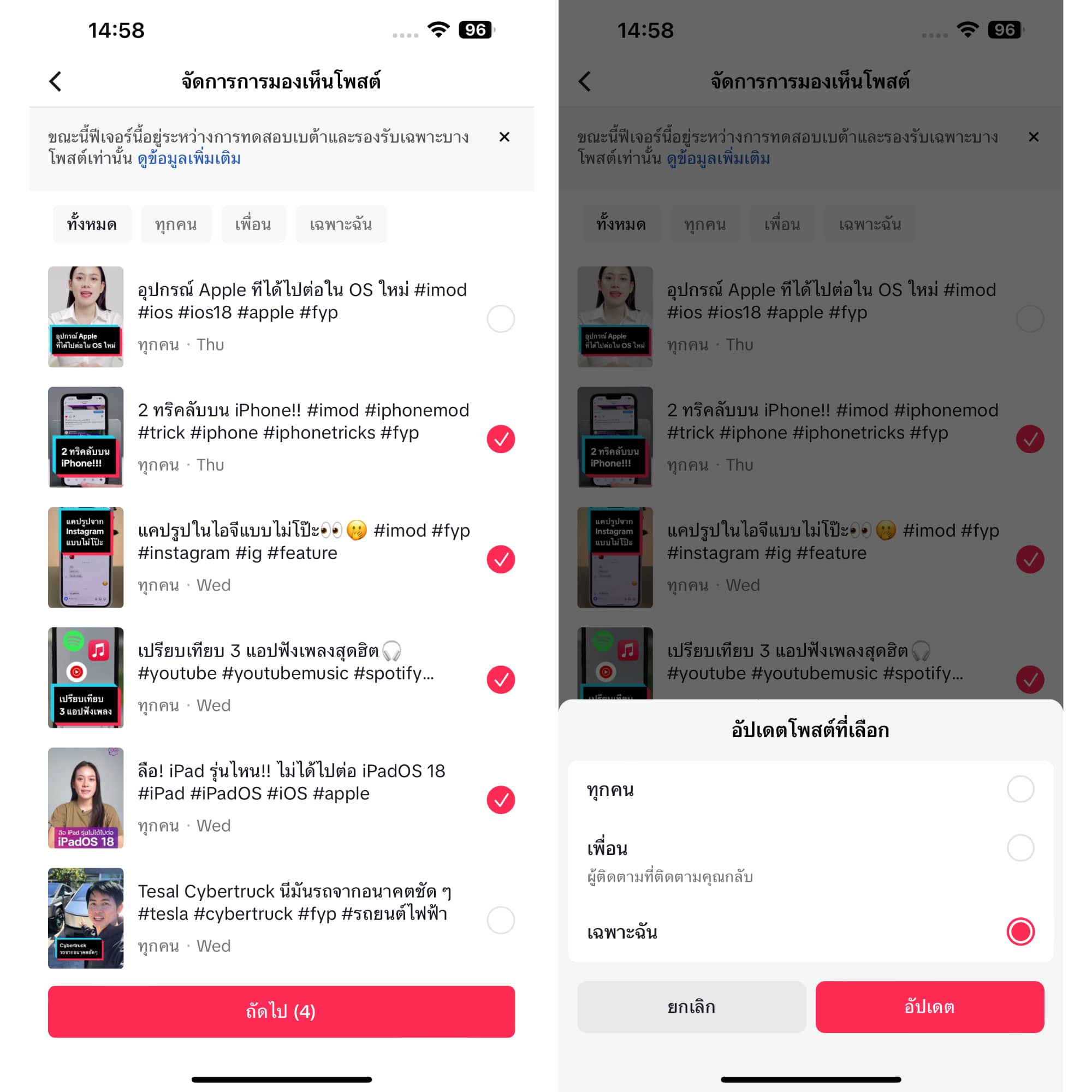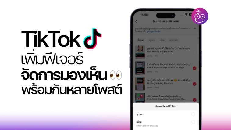 TikTok เพิ่มฟีเจอร์ จัดการการมองเห็น พร้อมกันหลายโพสต์ได้!