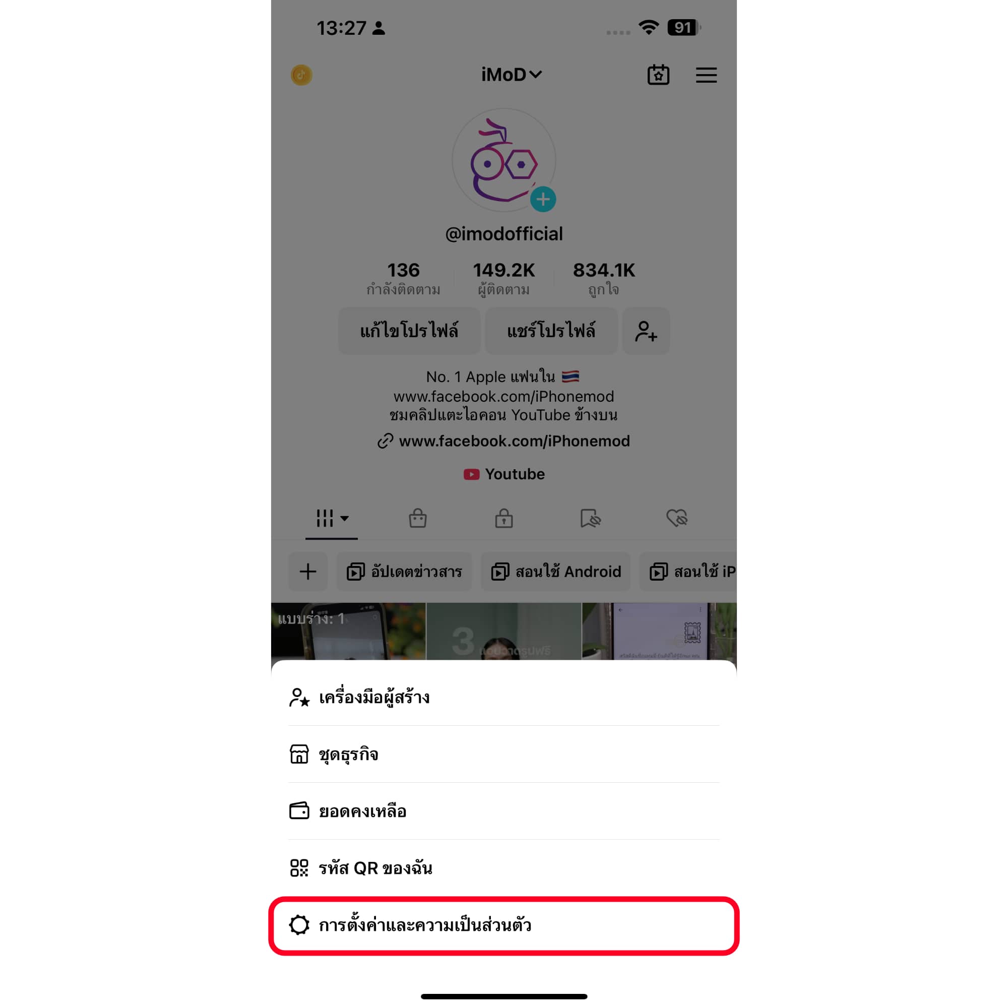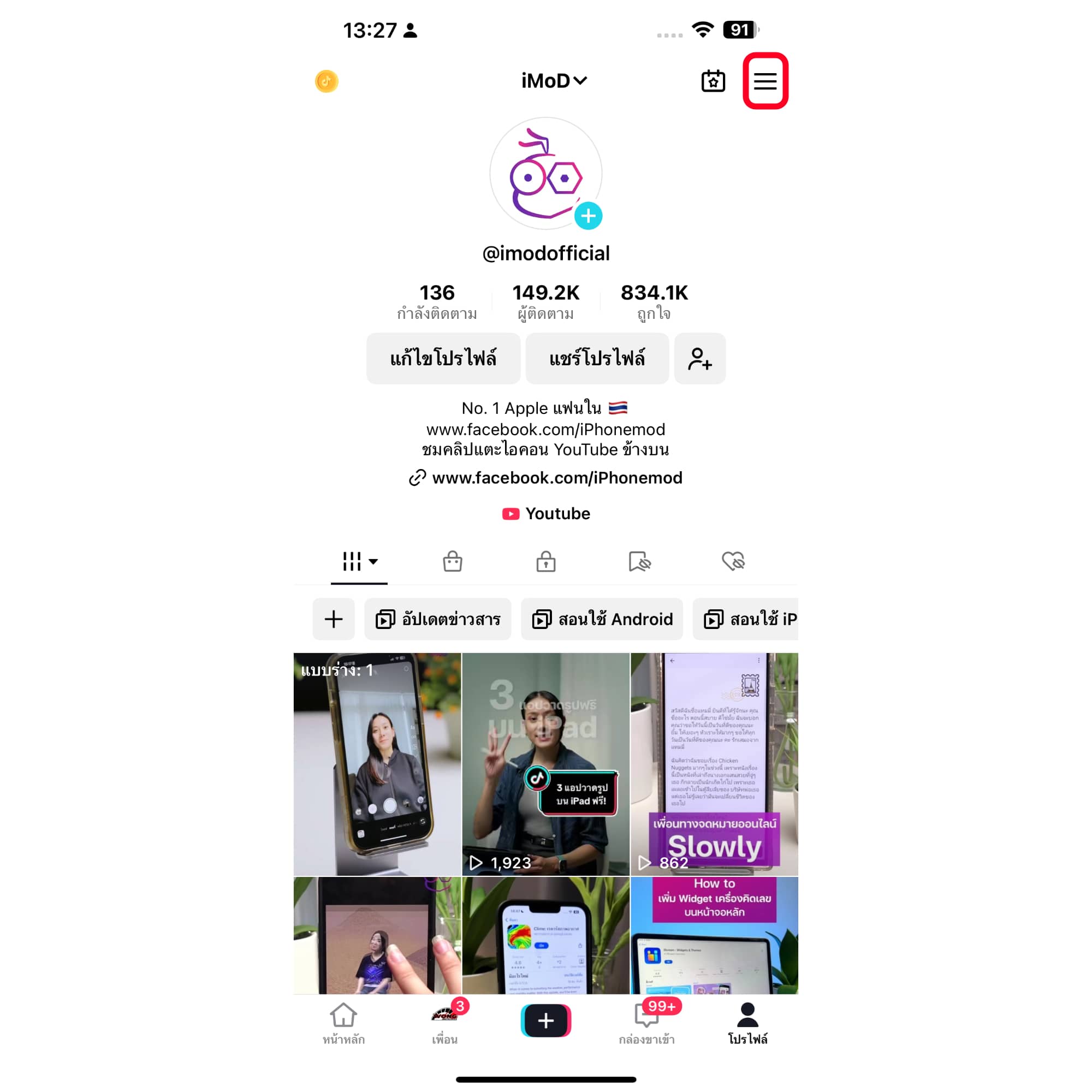 เข้ามาที่ TikTok กด “จุดสามจุด” ด้านบนขวา