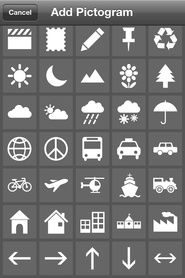 – Pictograms เป็นไอคอนรูปภาพเหมือนสัญลักษณ์ให้เอาไปตกแต่งรูปได้