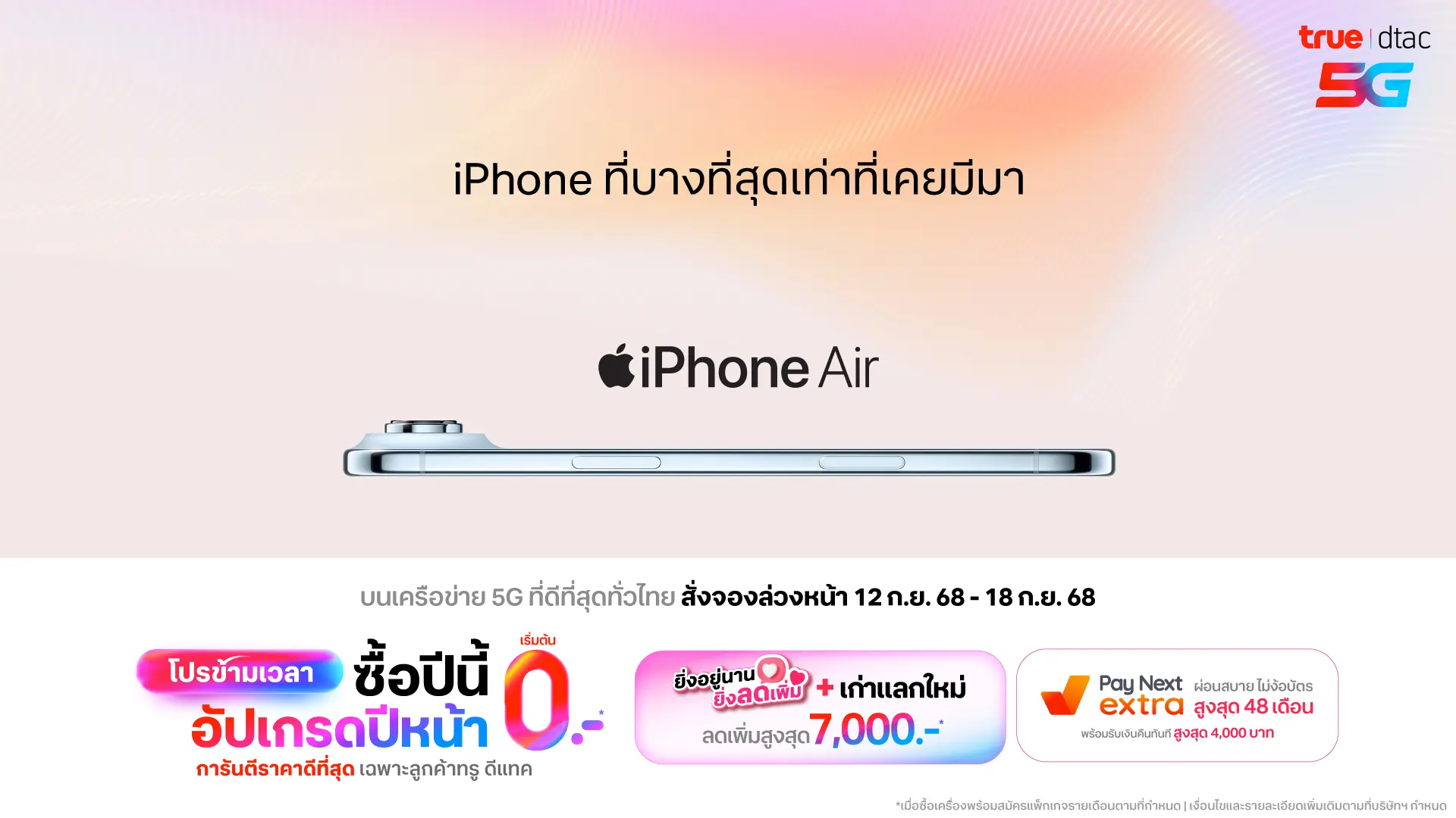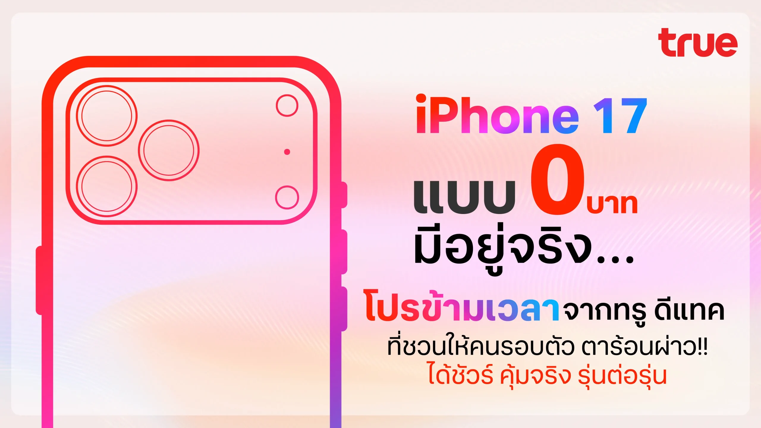 ทรู ดีแทค 5G เปิดตัว “โปรข้ามเวลา” ที่ให้คุณอัปเกรด iPhone 17 แบบ 0 บาท! สิทธิพิเศษที่ทำให้การเป็นเจ้าของ iPhone รุ่นใหม่ง่ายและคุ้มค่ากว่าที่เคย ด้วยข้อเสนอที่ไม่ต้องลุ้น ไม่ต้องรอ พร้อมสิทธิพิเศษอีกเพียบ!