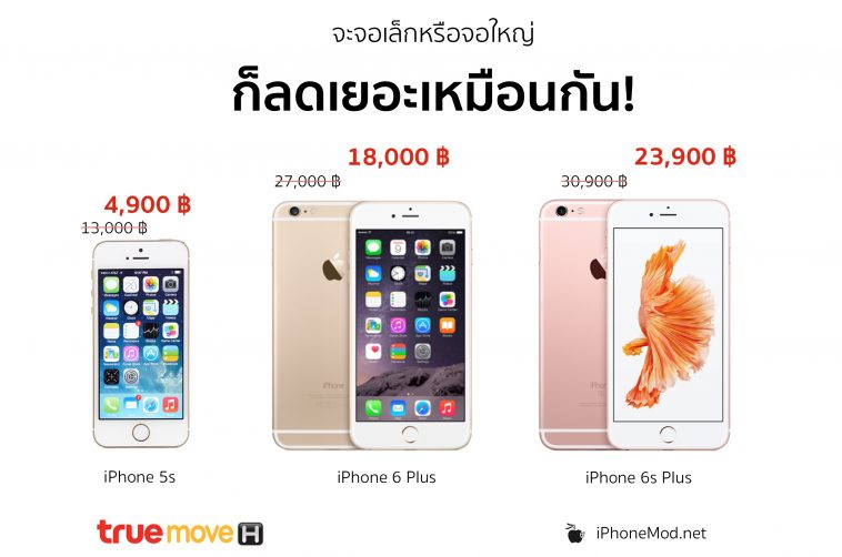 - รุ่น iPhone 6s Plus ทุกความจุ รับส่วนลด 7,000 บาท