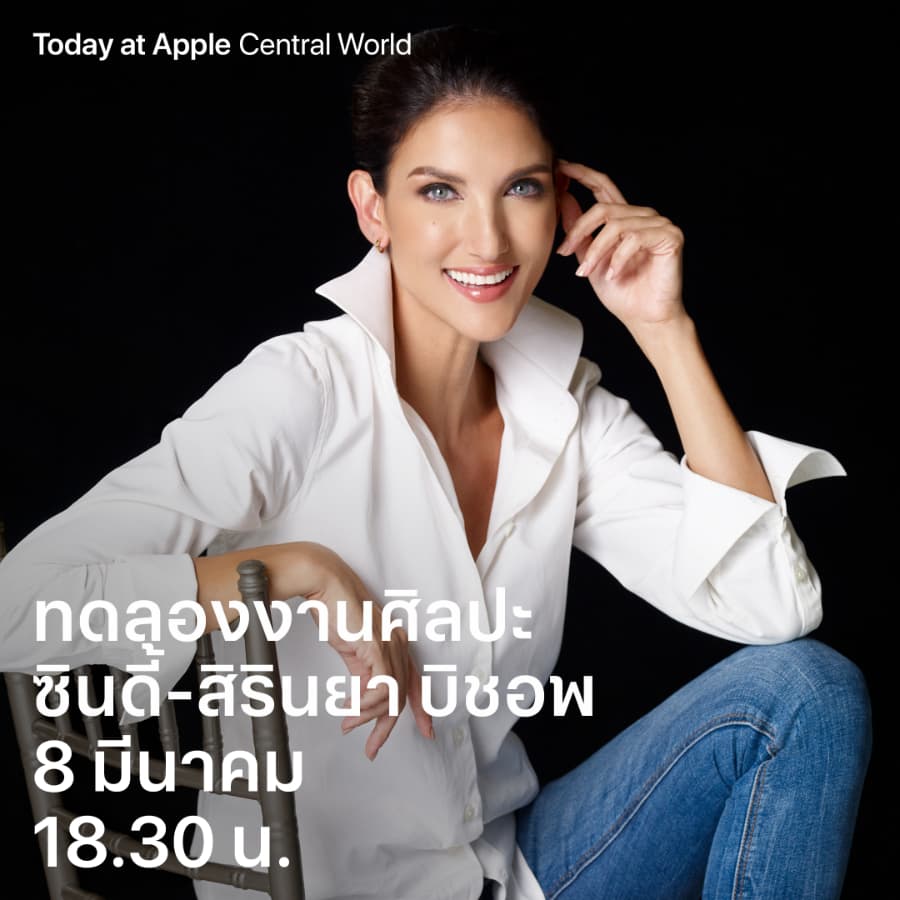 พบกับ ซินดี้ สิรินยา บิชอพ ในกิจกรรม Today at Apple เพื่อฉลองวันสตรีสากล ทดลองงานศิลปะ ออกแบบเสื้อผ้า และฟังประสบการณ์เกี่ยวกับการยุติความรุนแรงทางเพศ