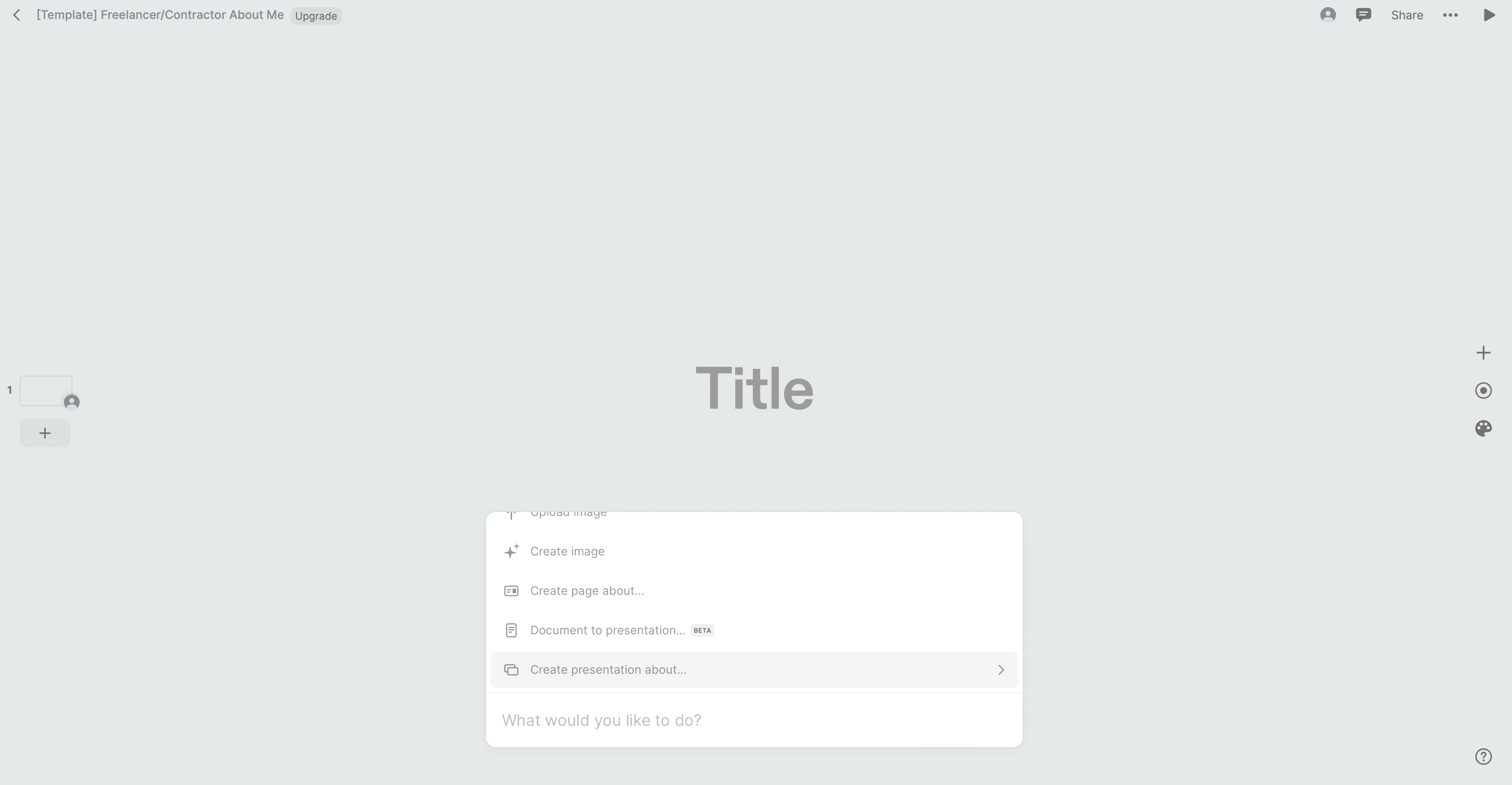 มาที่หน้านี้แล้ว ให้เรากดเลือก “Create presentation about…” แล้วพิมเรื่องที่ต้องการให้ทำเป็นสไลด์ได้เลย