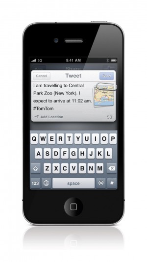 We’re kicking off CES 2012 with our first annoucement! The first is the v1.10 of the TomTom App for iPhone/iPad with access to both Facebook and Twitter. It can automatically plan routes based on information from Facebook events, places and friends. It is also possible to use the App to share destinations and arrival times on Twitter, Facebook, by email and SMS/text.