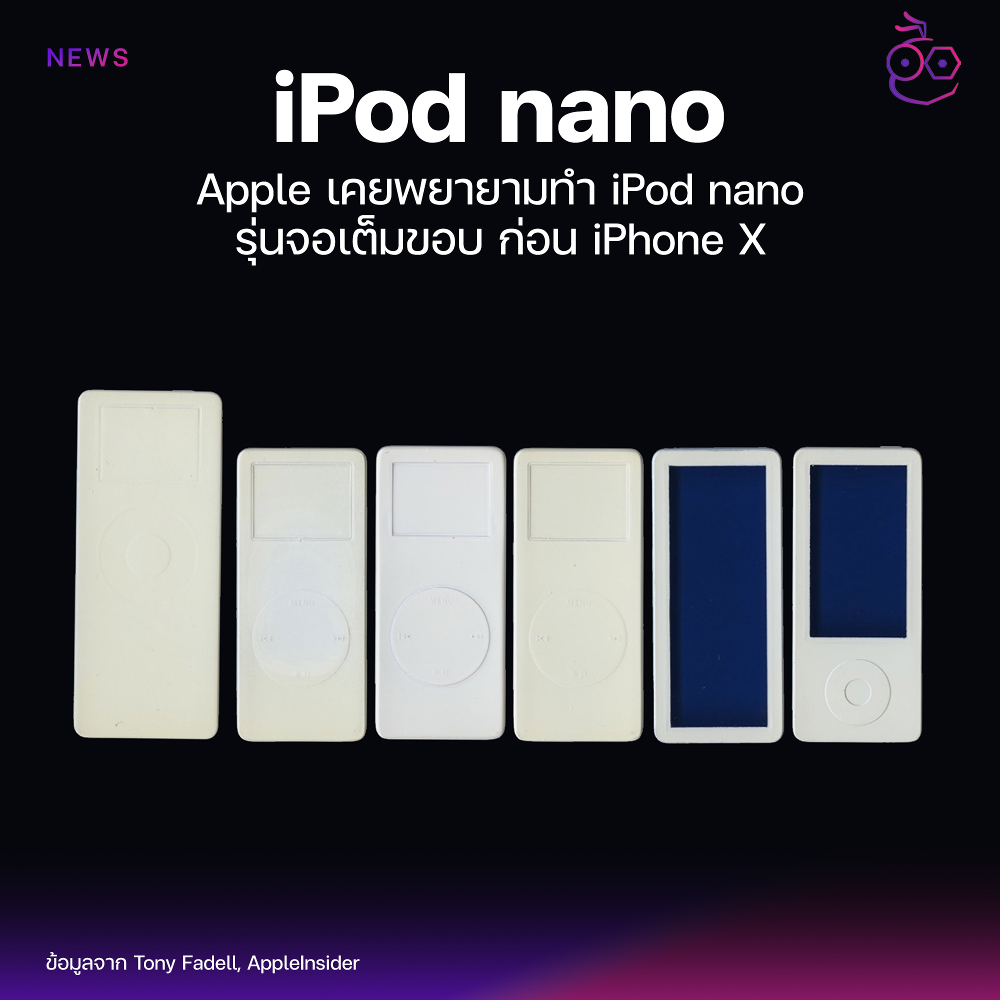 เมื่อไม่นานมานี้ Tony Fadell ได้เผยภาพต้นแบบ iPod nano ที่หนึ่งในต้นแบบนั้นใช้ดีไซน์จอเต็มขอบไม่มีปุ่ม Wheel แต่สุดท้ายดีไซน์นี้ไม่ได้เอามาใช้