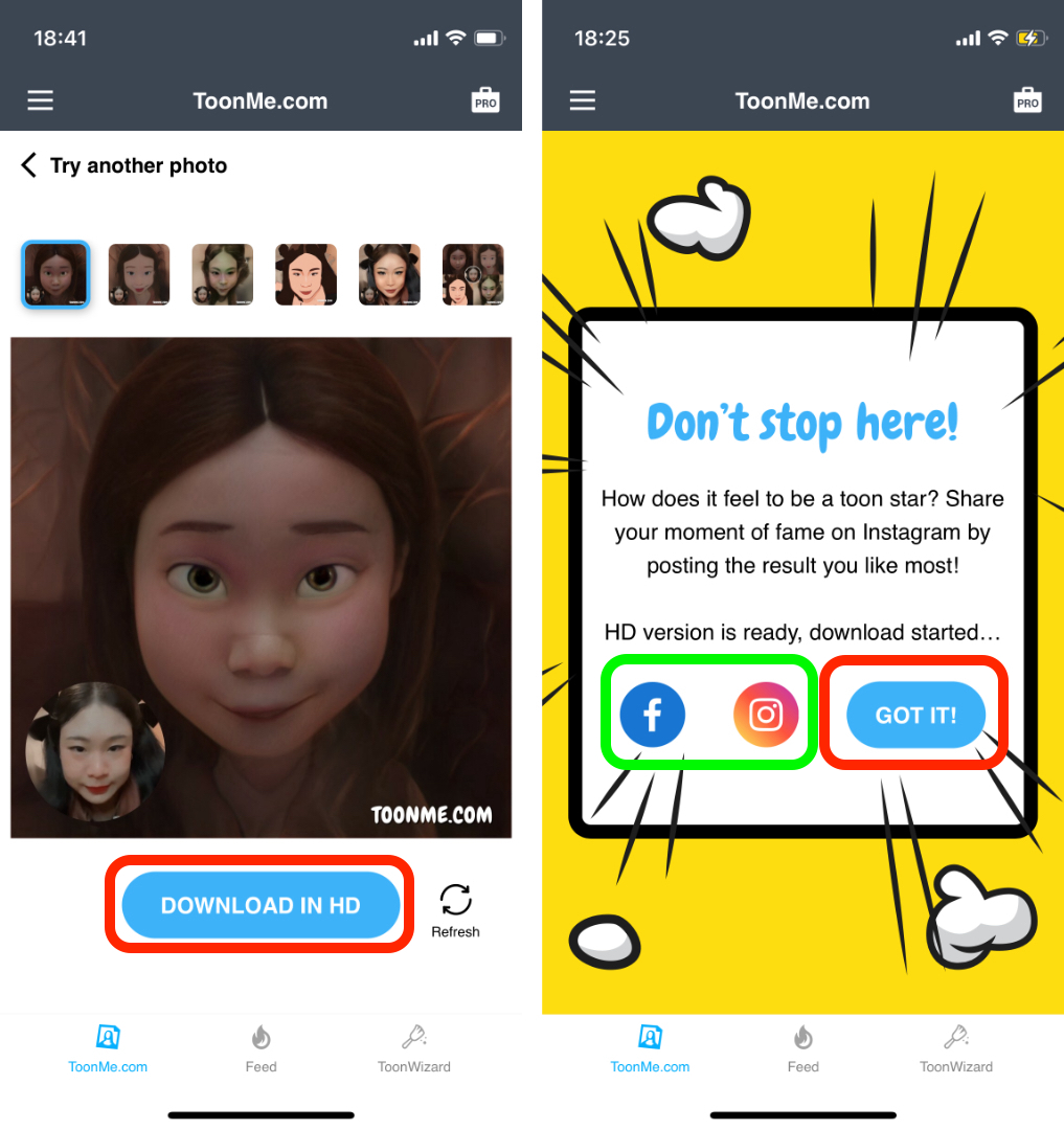 หลังจากนั้นรูปการ์ตูนของเราก็จะเข้าไปอยู่ที่แอปรูปภาพ (Photos)ในเครื่องเรา และเรายังสามารแชร์รูปไปที่แอป Facebook และ Instagram ได้ด้วย ถ้าหากไม่ต้องการแชร์ให้แตะคำว่า “GOT IT!”