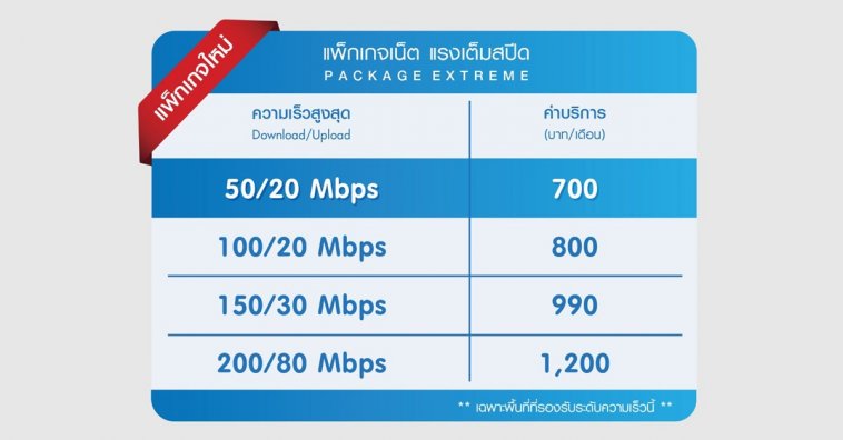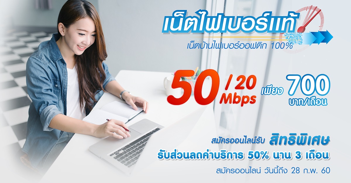 ไม่เพียงแค่ราคาเพียง 700 บาท/เดือน แต่ยังดึงดูดใจด้วยโปรโมชั่นสมัครออนไลน์ รับส่วนลดค่าบริการ 50% นาน 3 เดือน และเชื่อว่าหลายคนคงพ้นสัญญา 12 เดือนจากค่ายเก่ามาแล้ว แน่นอนว่าค่าบริการติดตั้งทุกอย่างฟรีตามธรรมเนียมปฎิบัติบ้านเรา ส่วนใครที่คิดว่า 50/20 Mbps ยังไม่พอใจยังมีความเร็วอื่นที่ราคาแรงไม่แพ้กัน