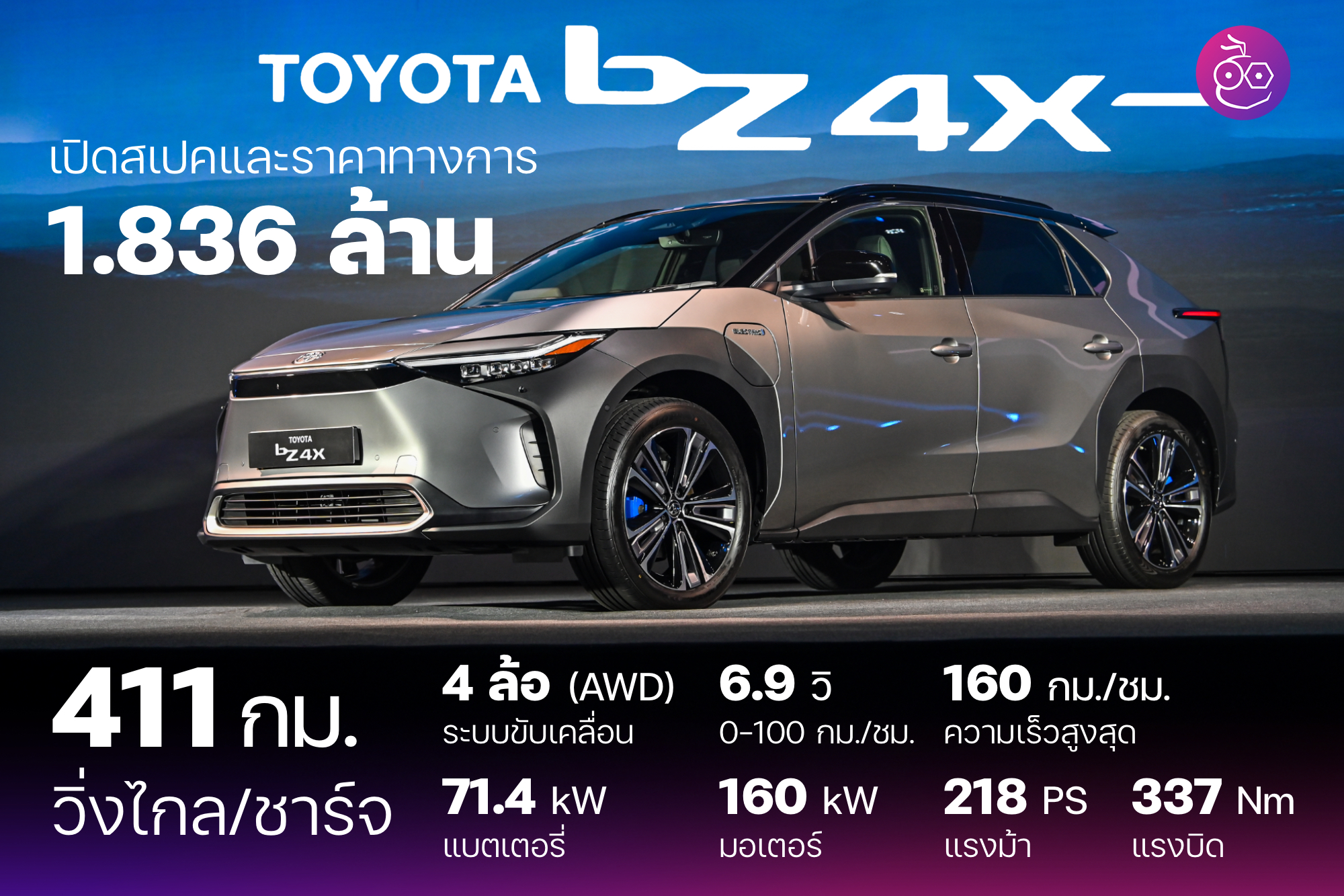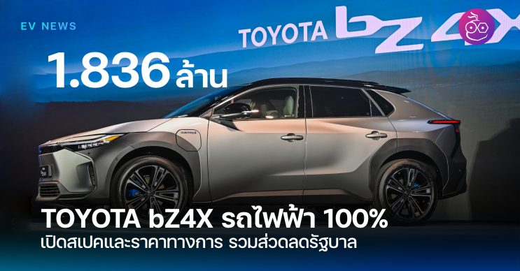 เปิดสเปคและราคาทางการ bZ4X รถ EV 100% จาก TOYOTA ราคา 1,836,000 ล้านบาท (รวมส่วนลดจากรัฐแล้ว)
