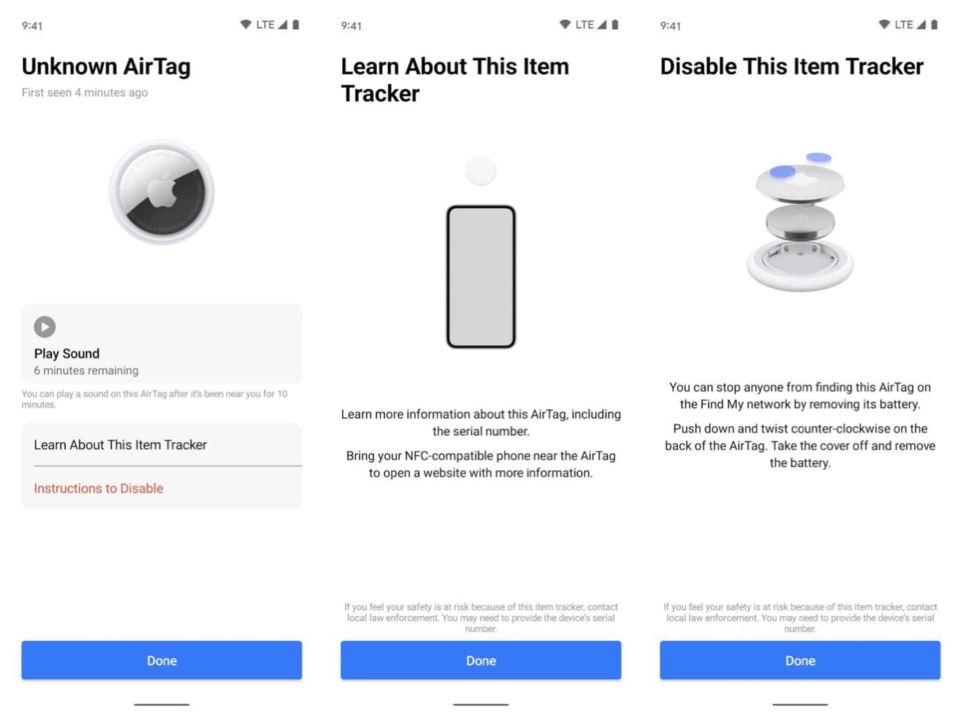 Apple ปล่อยแอปที่ชื่อว่า “Tracker Detect” ออกมาให้ผู้ใช้อุปกรณ์ Android ได้ดาวน์โหลดจาก Google Play Store ตัวแอปถูกออกแบบมาเพื่อให้ผู้ใช้ Android สามารถใช้เพื่อดูว่ามี AirTag อยู่ใกล้ ๆ หรือไม่ ป้องกันการถูกติดตามด้วย AirTag จากผู้ไม่หวังดี