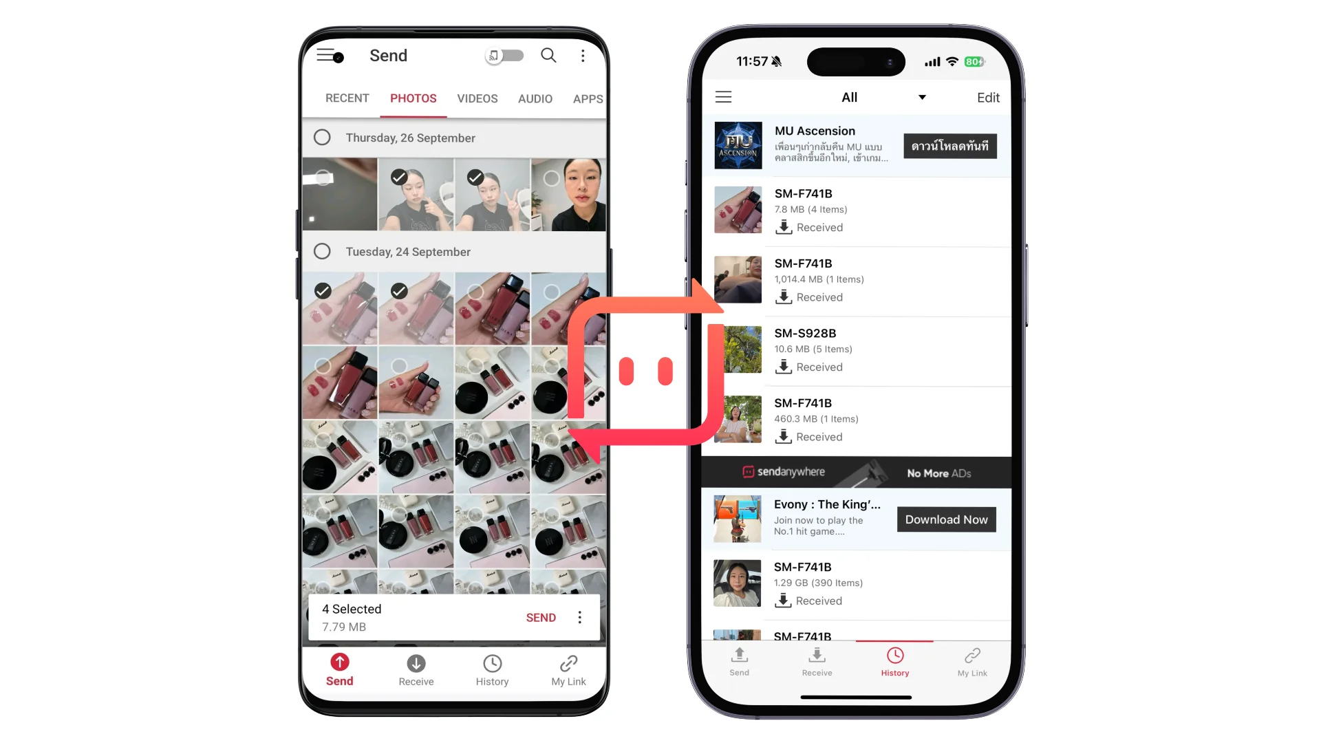 Send Anywhere เป็นแอปที่ช่วยให้การถ่ายโอนรูปภาพและไฟล์ระหว่าง Android และ iPhone เป็นเรื่องง่ายและสะดวกมากขึ้น ไม่ว่าคุณจะต้องการส่งรูปภาพ วิดีโอ หรือไฟล์ขนาดใหญ่ แอปนี้ตอบโจทย์ทุกความต้องการ พร้อมด้วยความปลอดภัยและความรวดเร็ว ลองดาวน์โหลดและใช้งานกันเลย