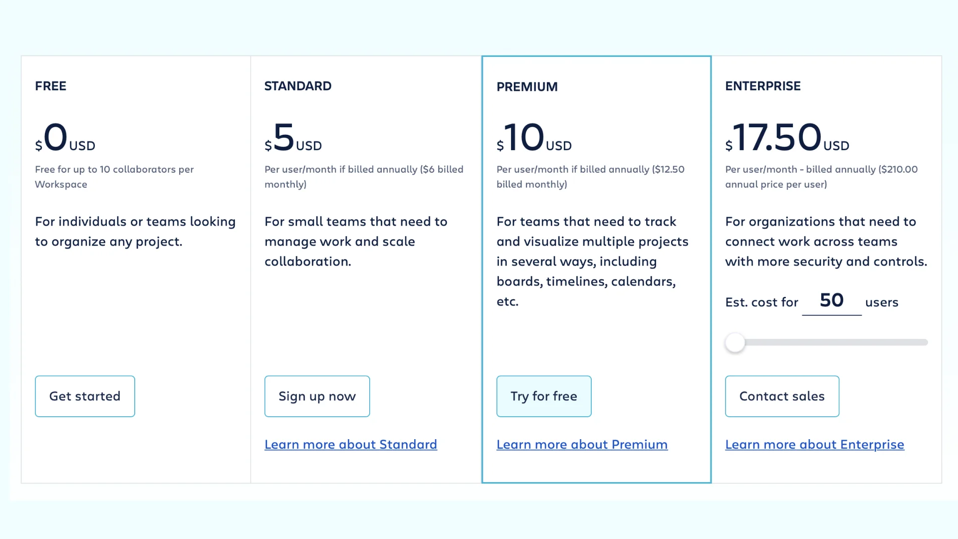 3. Premium Plan (เริ่มต้นที่ $10 ต่อเดือน/ผู้ใช้)