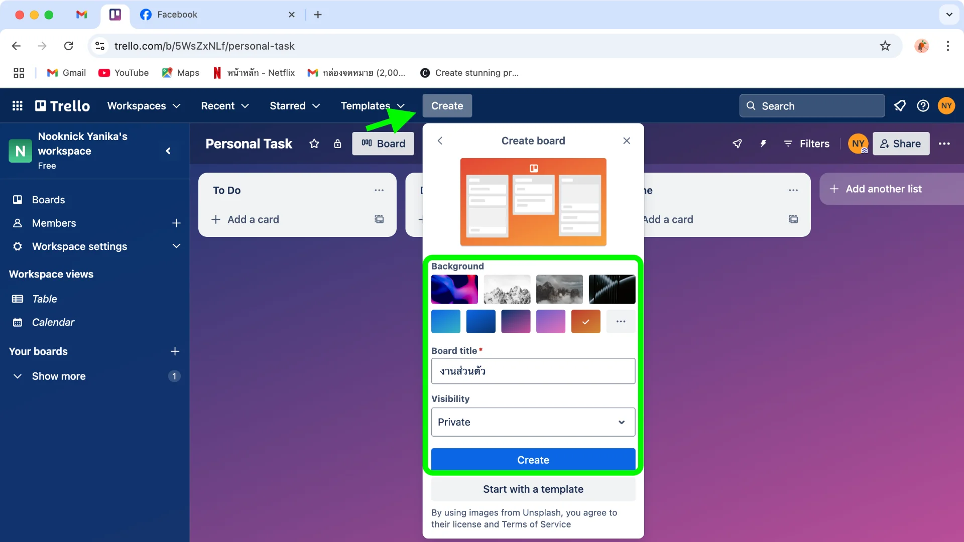 - ตั้งชื่อกระดาน เช่น “งานประจำวัน” หรือ “โปรเจกต์ลูกค้า” อย่าลืมเลือกพื้นหลังให้ถูกจริตด้วยนะ