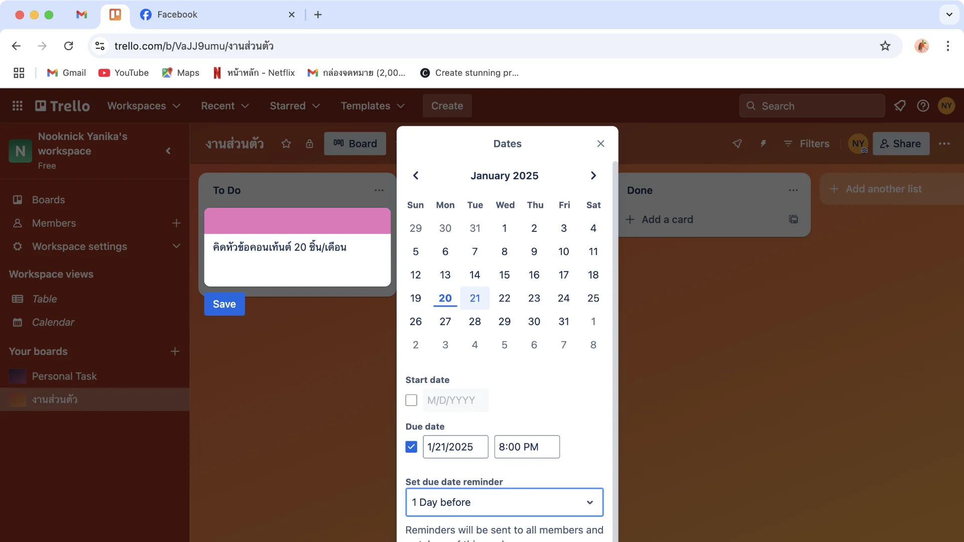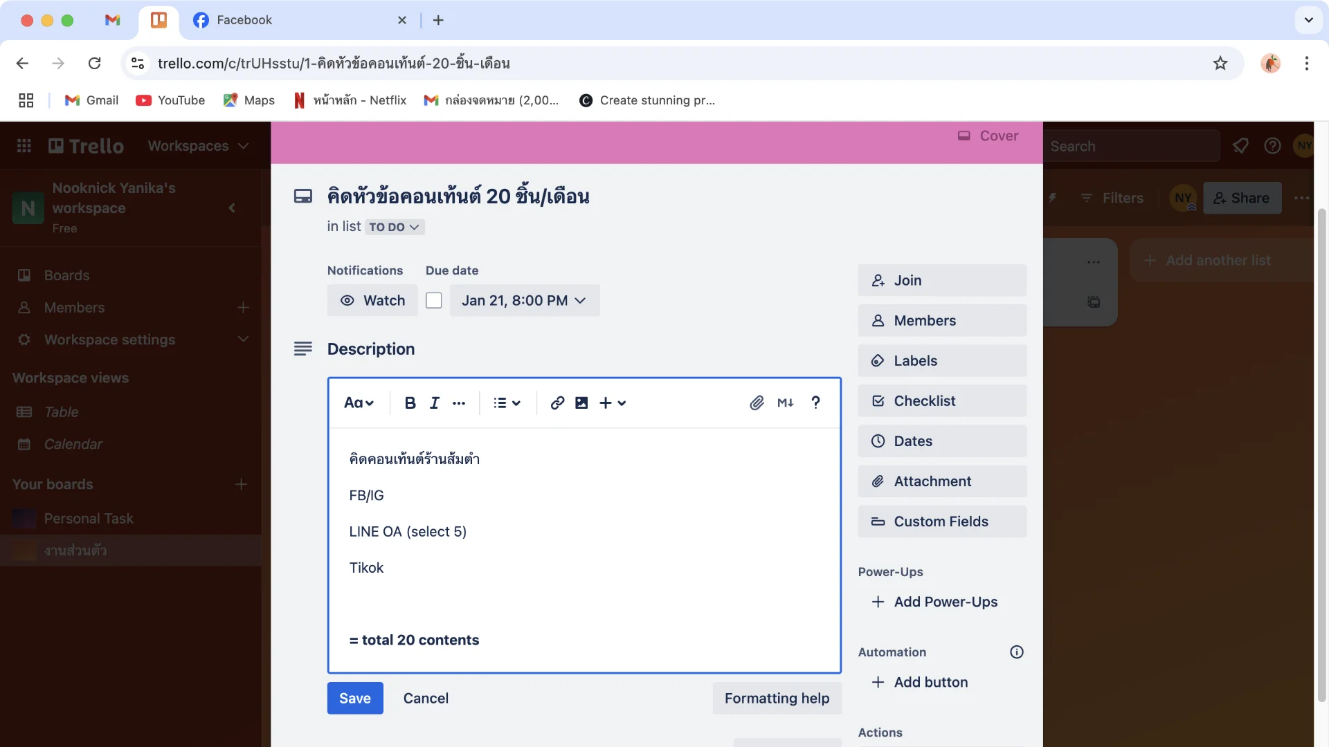 - ตั้งชื่อการ์ด เช่น “คิดคอนเทนต์” หรือ “ประชุมกับทีม”