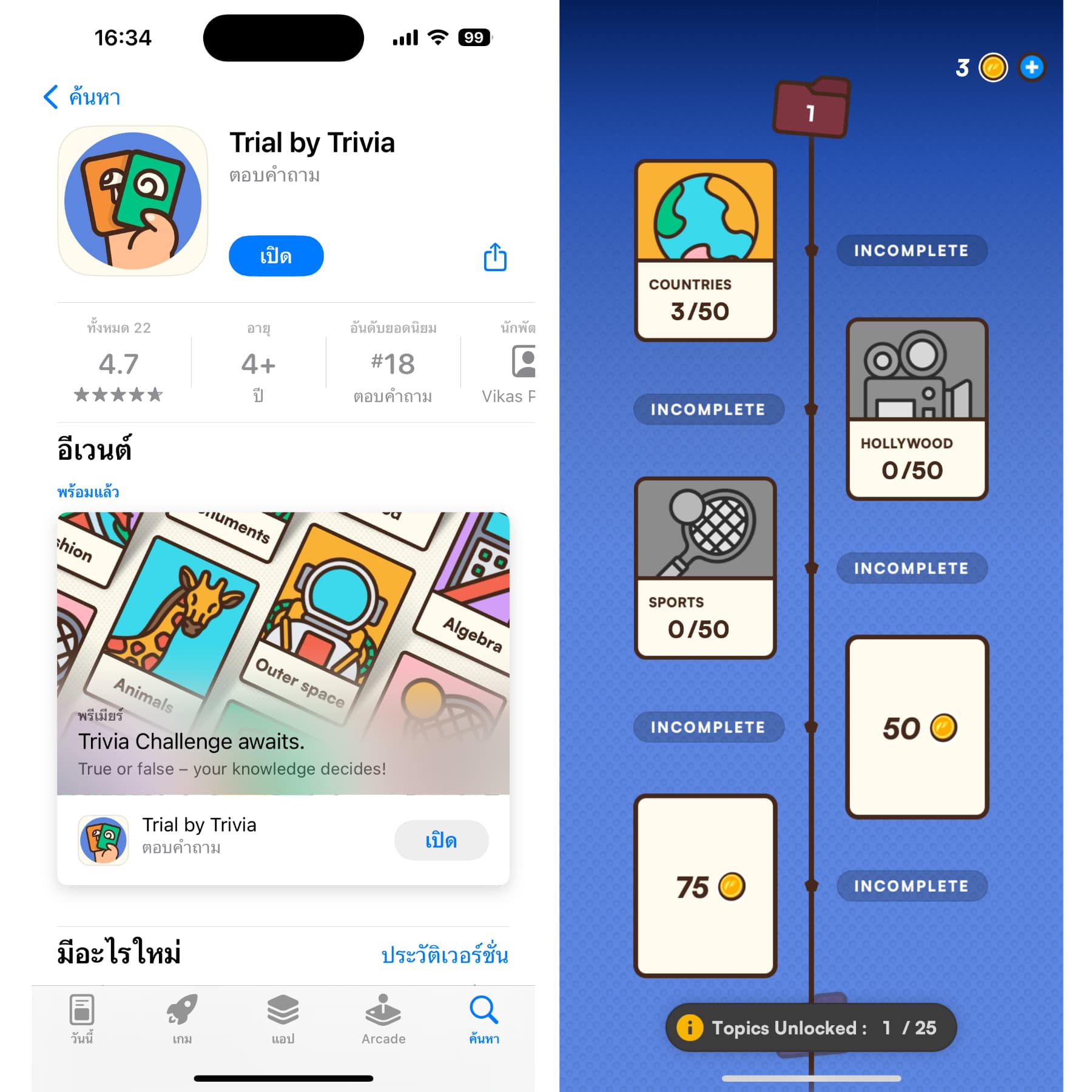 เกมตอบคำถามความรู้รอบตัว แอป Trial by Trivia ใช้ฝึกภาษาอังกฤษ เพิ่มพูนความรู้ โหลดฟรี!