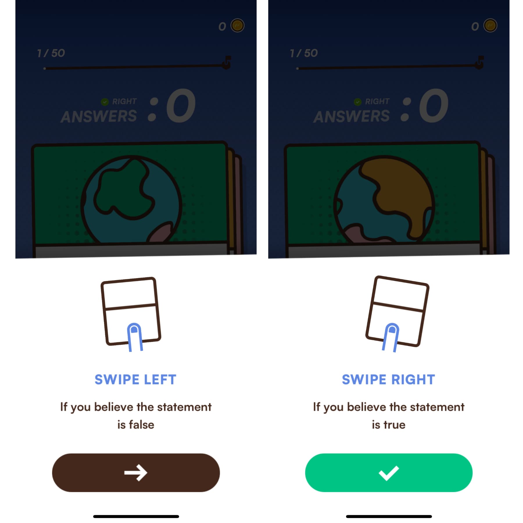 - ถ้าคิดว่า “ไม่ใช่” ปัดไปทางซ้าย