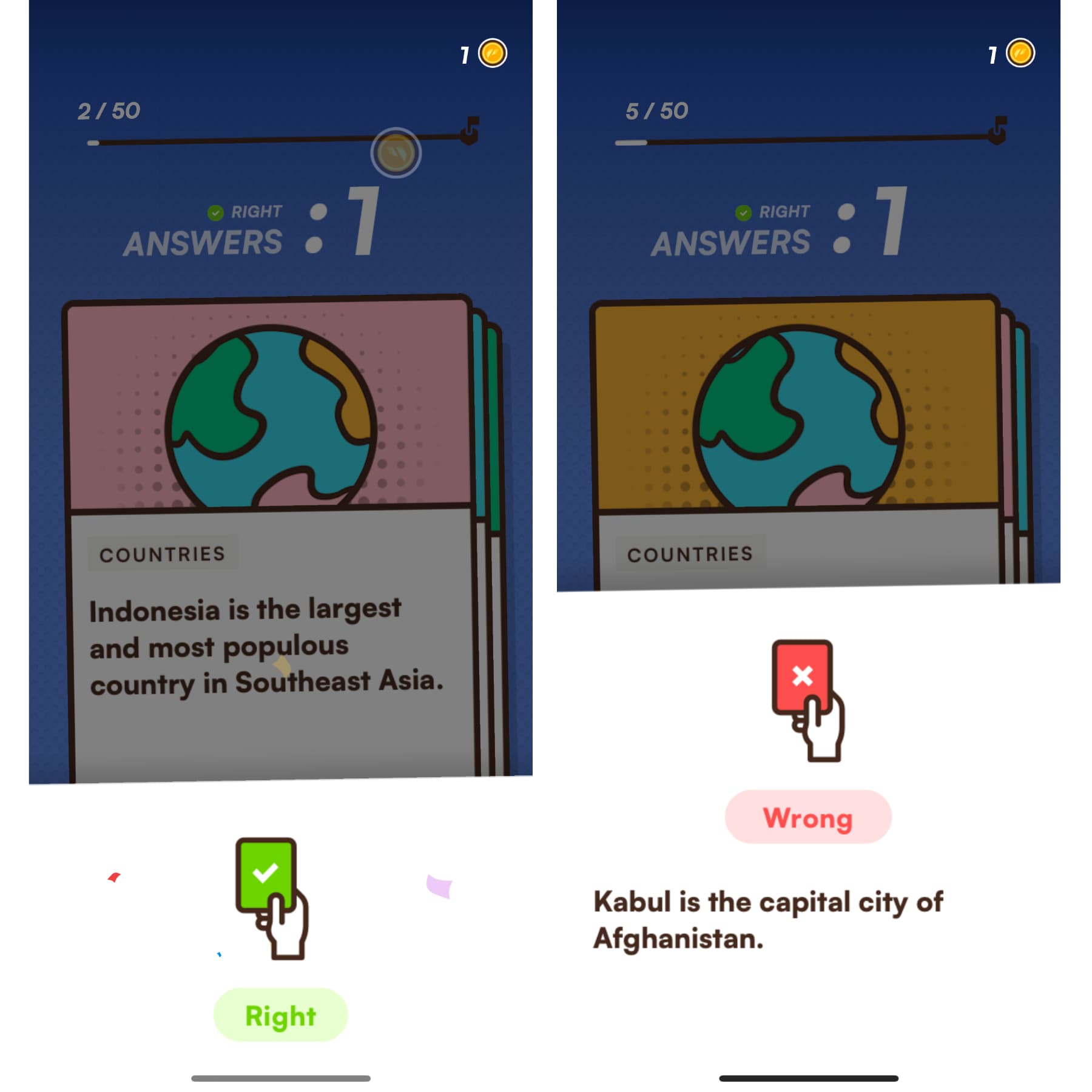 หมวดหมู่แรกจะเกี่ยวกับประเทศต่าง ๆ ทั่วโลก ซึ่งคำถามนั้นไม่ได้ยากเลย แต่ต้องอ่านดี ๆ เพราะมีคำถามที่หลอกเรา ที่หลายคนมักจะสับสนอยู่บ่อย ๆ หากตอบถูกเราจะได้ 1 แต้ม