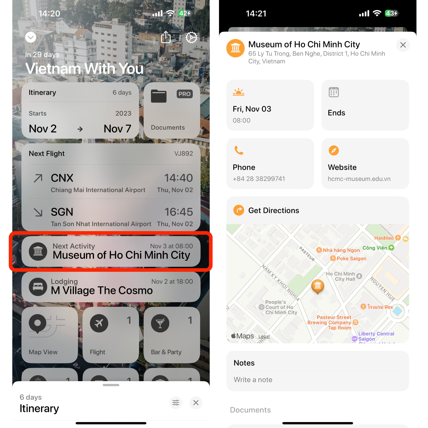 ที่เมนูกิจกรรมถัดไปจะแสดงข้อมูล ชื่อสถานที่ที่เราจะไป พอกดเข้าไปดูจะสามารถดูข้อมูลสำคัญได้เช่นกัน