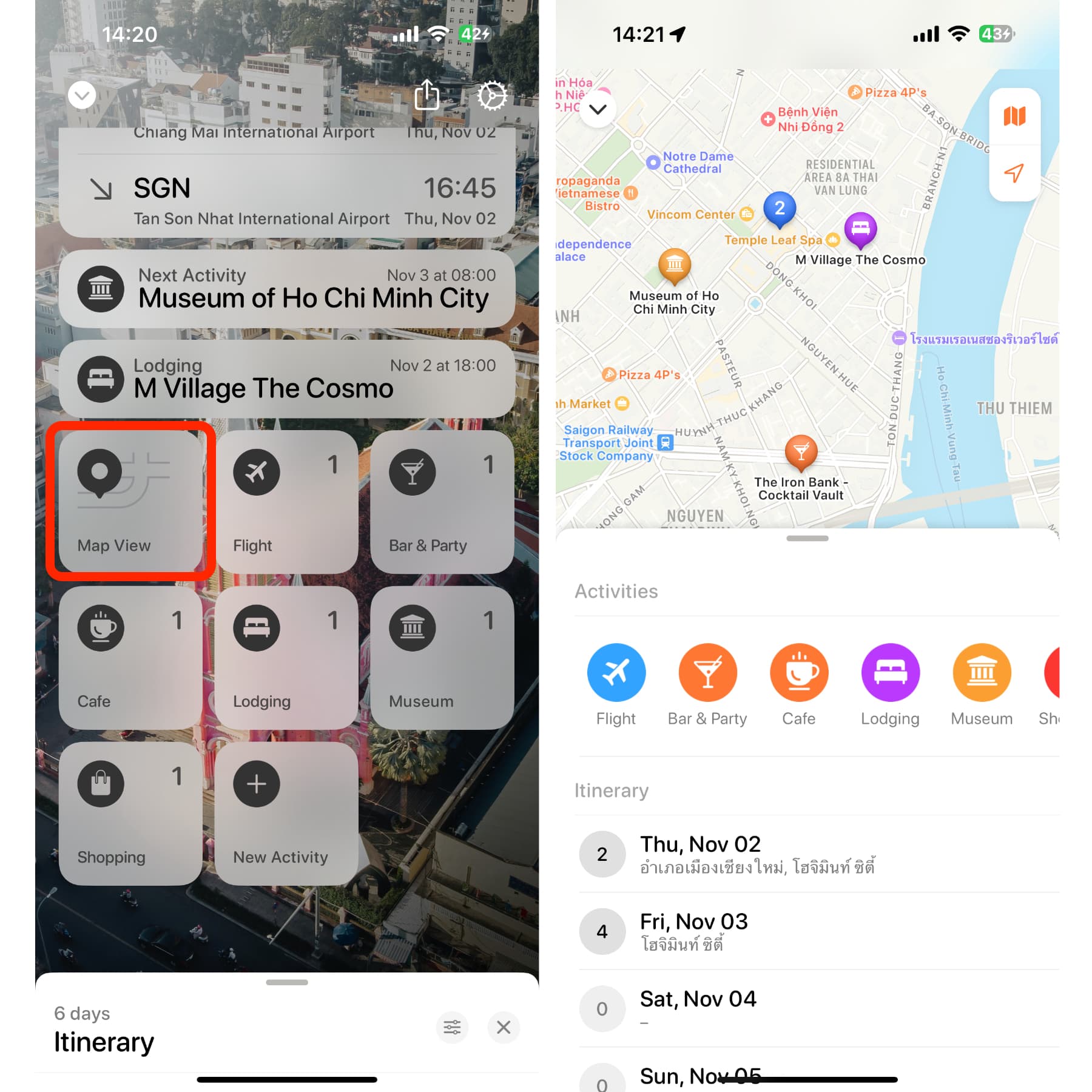 กดดูแผนที่ เพื่อดูหมุดของสถานที่ต่าง ๆ ที่เราแพลนเอาไว้ เอาไว้วางแผนการเดินทาง บางสถานที่อยู่ใกล้ ๆ กันก็อาจจะเดินไปก็ได้