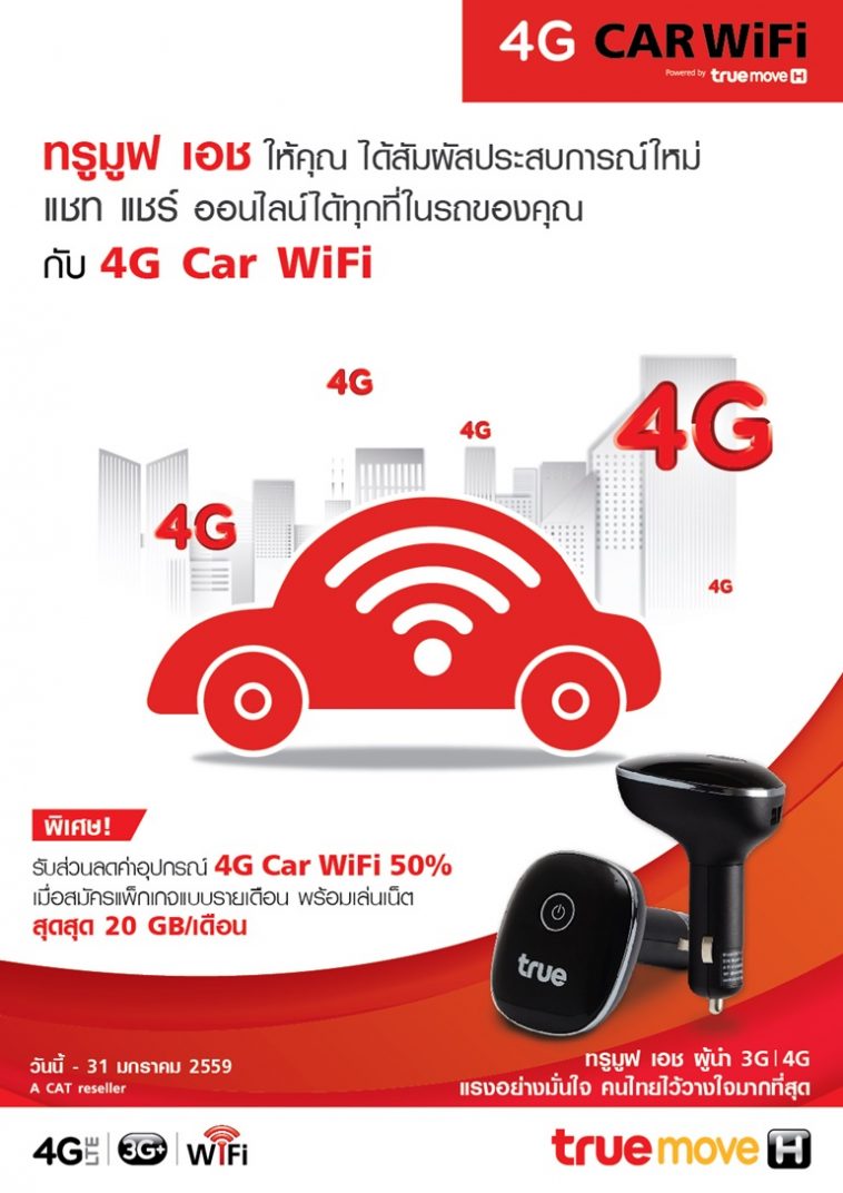 ทาดาาาา ~* ใกล้ช่วงเวลาเดินทางกลับบ้านในตอนปีใหม่กันแล้ว True 4G CAR WiFi เป็นอุปกรณ์ขนาดเล็กที่ราคาไม่แพง แถมมีการใช้งานที่ง่ายดายเพียงกดปุ่มเดียว (ข้างในใส่ซิมการ์ดได้) จากนั้นรถคุณก็จะมี WiFi SSID เป็นของตัวเอง รองรับการใช้งานได้ถึง 5-10 อุปกรณ์ เท่ชะมัด!