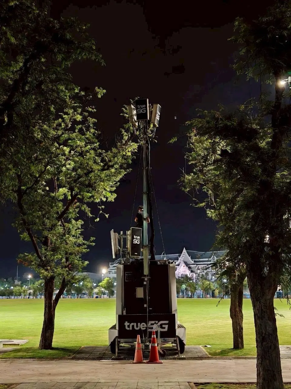 โดยได้จัดส่งรถโมบายล์สถานีฐานเคลื่อนที่เร็ว หรือ Cell on Wheels (COW) ที่ปรับโทนสีรถให้เหมาะสมเข้าประจำพื้นที่ท้องสนามหลวง 2 จุด พร้อมตรวจสอบความพร้อมของเสาสัญญาณและปรับปรุงโครงข่าย 5G, 4G และ WiFi ในจุดสำคัญของท้องสนามหลวง และพื้นที่ใกล้เคียง เพื่อให้สัญญาณครอบคลุมและใช้งานได้อย่างมีประสิทธิภาพสูงสุด