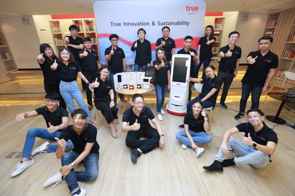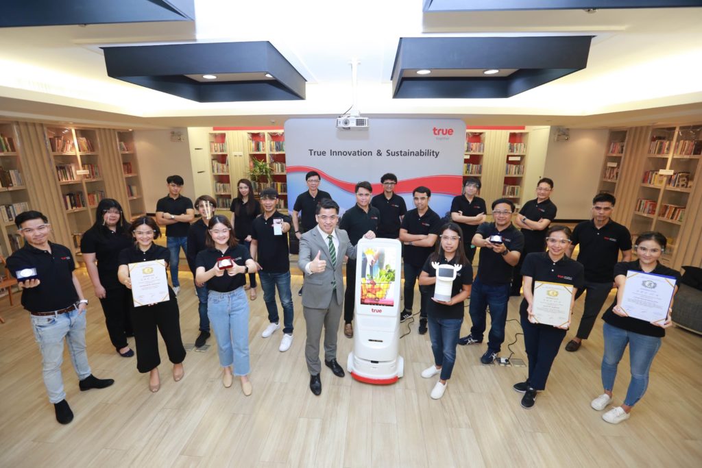 กลุ่มทรู โดย ดร. ธีระพล ถนอมศักดิ์ยุทธ หัวหน้าคณะผู้บริหาร ด้านนวัตกรรมและความยั่งยืน พร้อมด้วยทีมงานนวัตกรจากทรู อินโนเวชั่น และทรู โรโบติกส์ ร่วมภาคภูมิใจกับความสำเร็จ ในโอกาสที่กลุ่มทรู สร้างชื่อเสียงให้แก่ประเทศไทยและเป็นที่ยอมรับระดับสากลอย่างต่อเนื่อง แม้ช่วงสถานการณ์วิกฤตโควิด-19 คว้า 3 รางวัล ทั้งเหรียญทอง