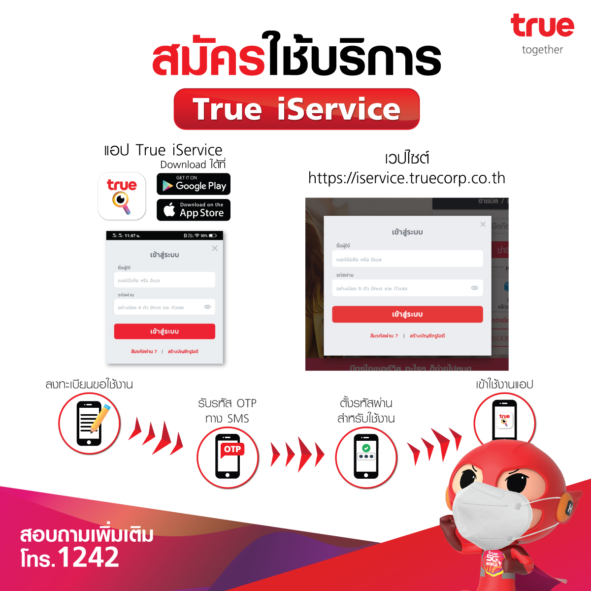 วิธีใช้งานก็ไม่ยากขั้นแรกก็สมัคร iService ผ่านทางแอปพลิเคชันใน Android และ iOS หรือใครสะดวกใช้งานผ่านทางเว็บไซต์ก็ได้เช่นกัน เพียงแค่ลงทะเบียนแล้วรอรับ OTP จากนั้นก็ตั้งรหัสผ่านก็จะพร้อมใช้งานทันที สามารถใช้งานได้ทุกอย่างแบบไม่ต้องโทรหา Call Center อยากเช็คยอด ว่าใช้ไปเท่าไหร ตรวจสอบรายละเอียดการใช้งาน จ่ายบิลผ่านแอป ตัดบัตรเครดิต หรือจ่ายผ่าน TrueMoney Wallet ก็ได้เช่นกัน