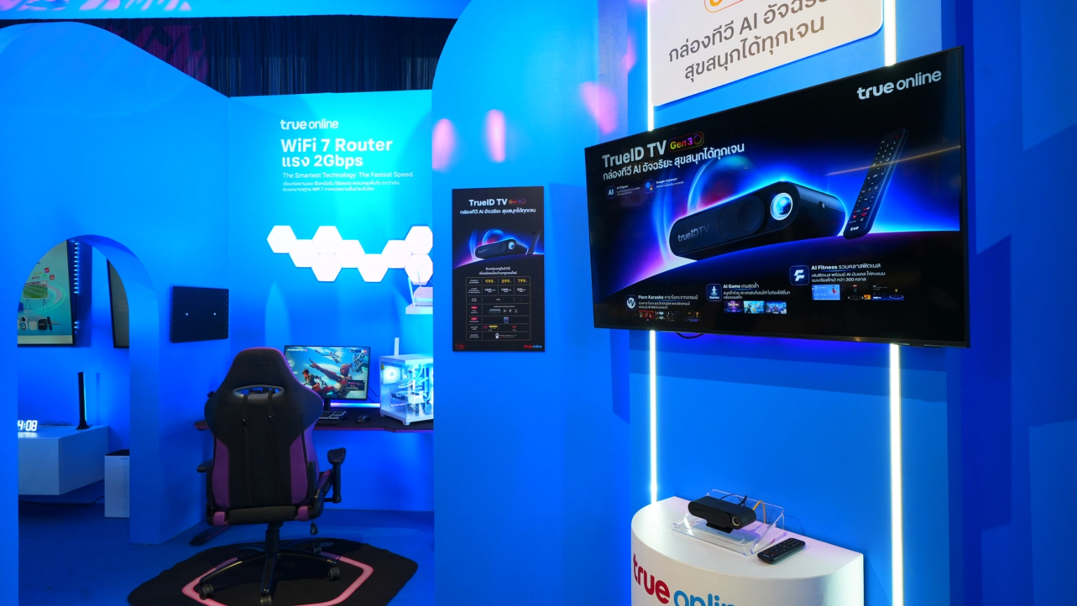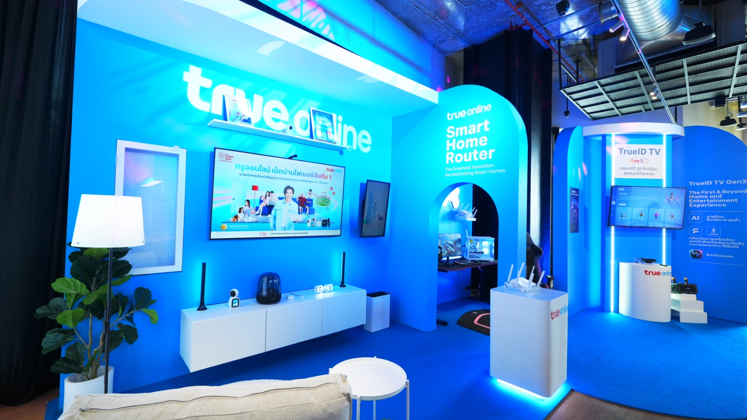 2) Smart Solution สมาร์ทโซลูชั่น ที่แรก ที่เดียว กับเราเตอร์เชื่อมต่ออุปกรณ์ IoT ในบ้าน เป็นทั้ง IoTHub และปล่อย WiFi ในตัว มาพร้อมอุปกรณ์ Smart Home IoT และยังมี TrueID TV Gen 3 กล่องทีวี AI อัจฉริยะ สุข สนุก ตอบโจทย์ทุก Gen ในบ้าน ทั้ง AI Fitness, AI Game, AI Chipset ใหม่ล่าสุด ให้ภาพคมชัดระดับ 4K HDR และบริการร้องเพลงคาราโอเกะ
