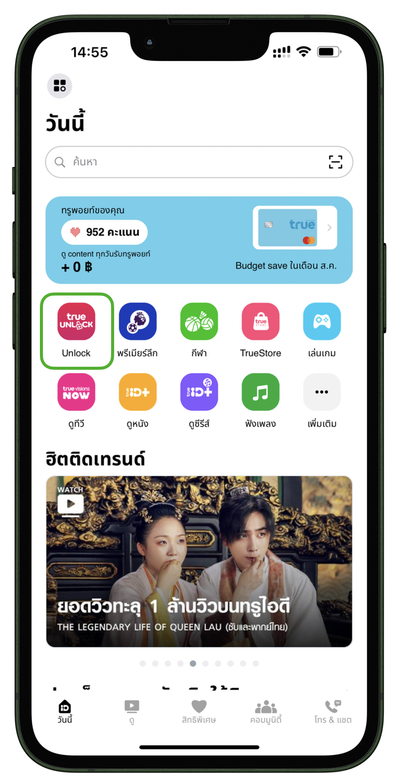 (หากไม่เจอหน้ารับสิทธิ์ทรูพรีเมียร์ลีก 22/23 ให้เข้าหน้าวันนี้ แล้วแตะ “Unlock”)