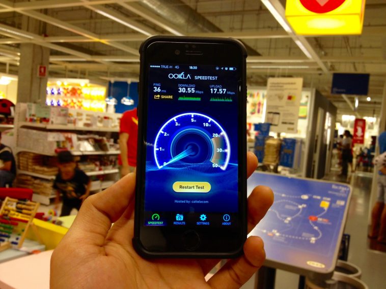 ทดสอบความแรงสัญญาณ TrueMove H 4G ที่ IKEA ในเมกาบางนาบริเวณชั้น 2 ภายในตึกผลที่ได้ก็อยู่ในระดับที่น่าพอใจ อัตราการดาวน์โหลดเฉลี่ยอยู่ราวๆ 25-30 Mb/s ซึ่งถือว่าอยู่ในระดับดี