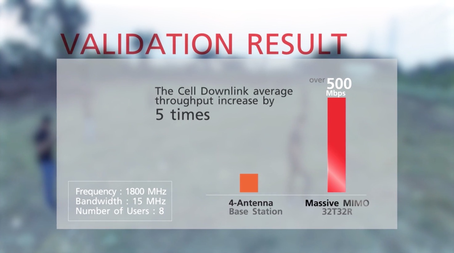 การทดสอบครั้งนี้ทาง TrueMove H ได้เพิ่มตัวรับและส่งสัญญาณแบบ Massive MIMO 32T 32R ในพื้นที่จริง โดยใช้ความถี่ 1800 MHz ด้วย Bandwidth ขนาด 5MHz