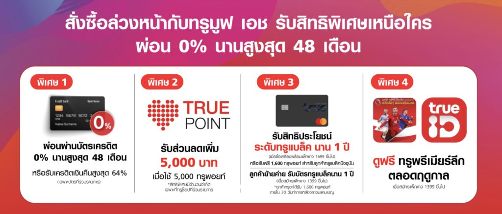 ราคาที่แสดงเป็นราคาโปรโมชัน แพ็กเกจ 1,699 บาท และหักส่วนลด 1,000 บาทเรียบร้อยแล้ว (สำหรับลูกค้าทรูแบ็คการ์ดและย้ายค่ายเบอร์เดิม)