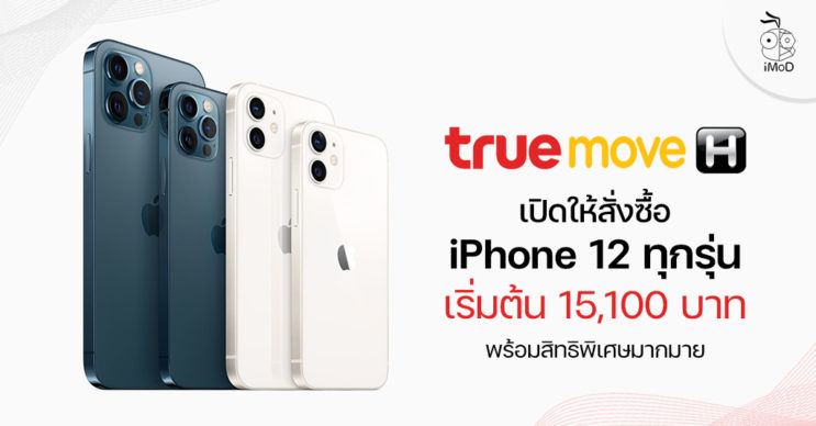TrueMove H เปิดให้สั่งซื้อ iPhone 12 ทุกรุ่น ได้แก่ iPhone 12 mini, iPhone 12, iPhone 12 Pro และ iPhone 12 Pro Max ราคาโปรโมชันเริ่มต้น 15,100 บาท พร้อมสิทธิพิเศษอีกมากมาย