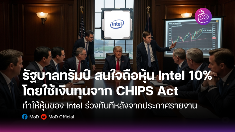 รัฐบาลนายทรัมป์สนใจเข้าถือหุ้นของ Intel 10% โดยใช้เงินทุนจาก CHIPS Act ซึ่งส่งผลให้หุ้นของ Intel ตกลงทันที