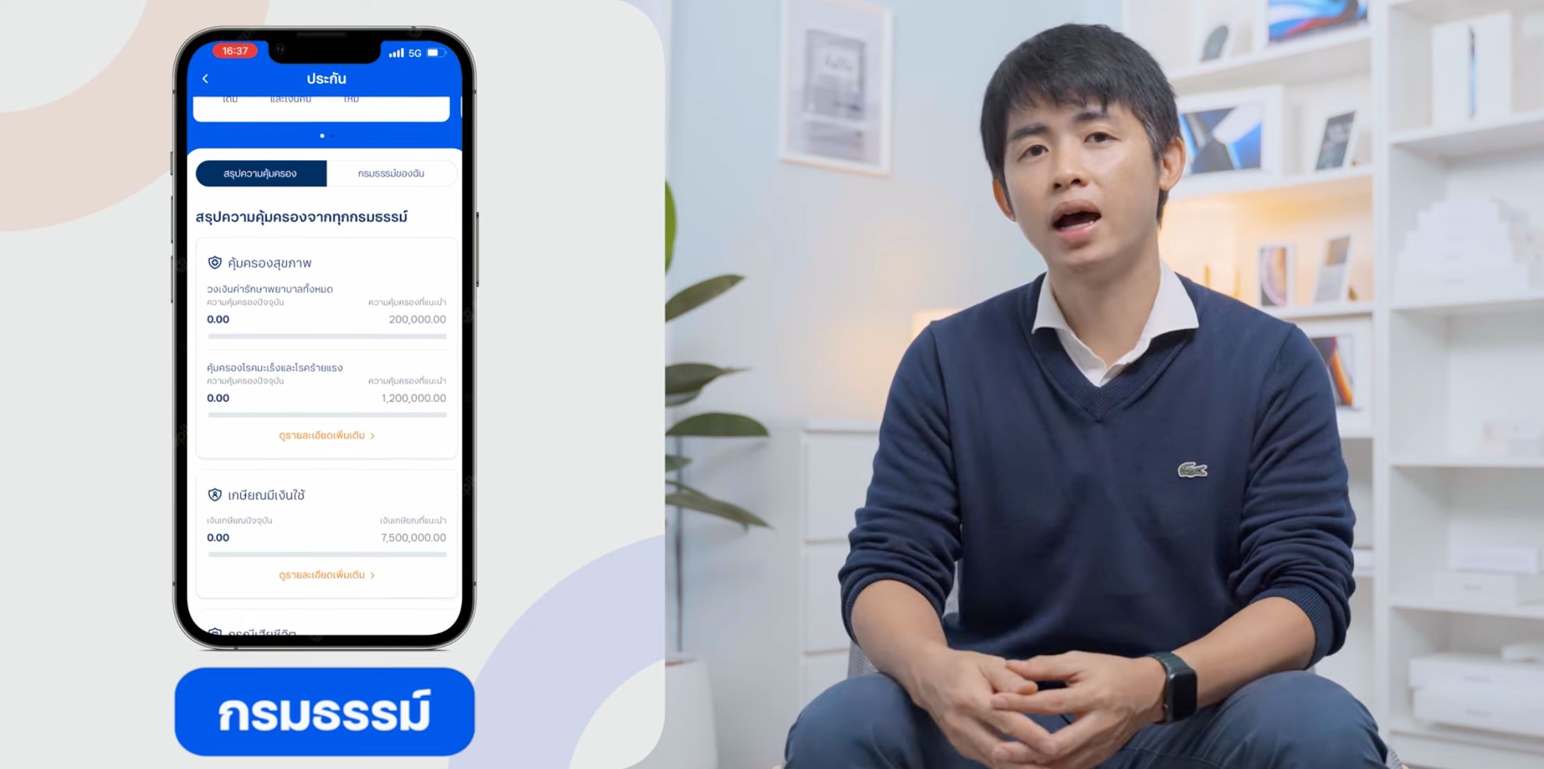 - การคุ้มครอง เช่น การซื้อกรรมธรรม์ ประกันภัย ต่างๆ ภายในแอปจะมีการแนะนำ กรรมธรรม์ที่เหมาะกับตัวเราโดย วิเคราะห์ข้อมูลจากเป้าหมายที่เราตั้งเอาไว้ว่า เราต้องการอะไร ช่วยให้เราไม่ซื้อกรรมธรรม์ผิด หรือ ซื้อเกินตัว