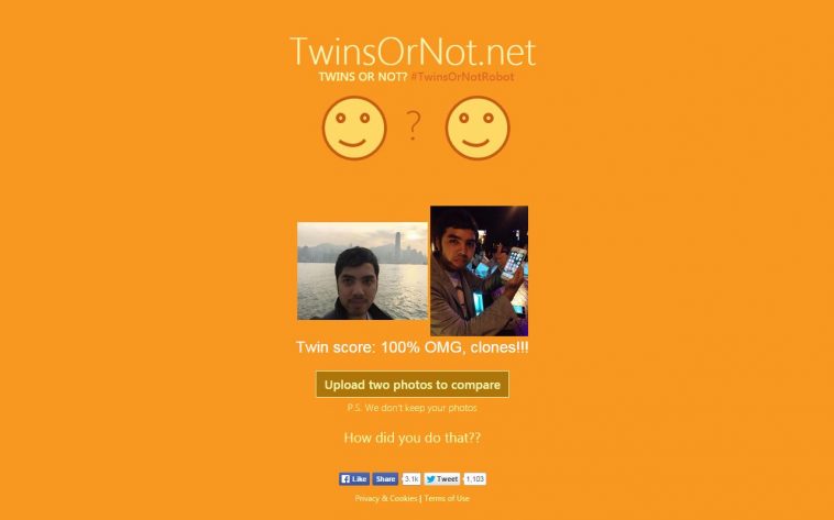 ก่อนหน้านี้ได้มี How-Old.net ซึ่งก็เล่นกันไปทั่วบ้านทั่วเมือง แต่รอบนี้กลับมาอีกครั้งด้วย TwinsOrNot.net สำหรับเปรียบเทียบว่า “คุณสองคนหน้าเหมือนกันแค่ไหน” โดยผลการวิเคราะห์ก็ไม่ได้ไก่กา แต่มีสมการทางคณิตศาสตรซึ่งแม่นยำเวอร์ ๆ ว่าแล้วเราไปดูกันครับ
