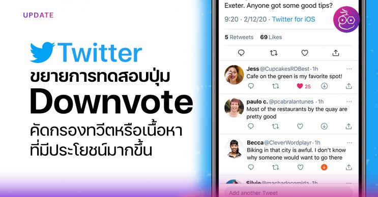การทดสอบนี้เริ่มขยายให้ผู้ใช้ทั่วโลกได้ใช้งาน ทั้งผู้ใช้ iOS และ Android รวมถึจะขยายไปยังผู้ใช้ Twitter บนเว็บเร็ว ๆ นี้ สำหรับใครที่ยังไม่เห็นตัวเลือก Downvote ก็รอการอัปเดตให้ใช้อย่งเป็นทางการอีกครั้งนะคะ