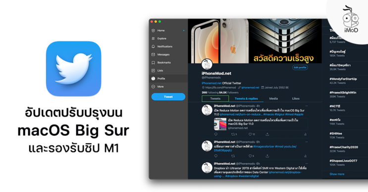 Twitter สำหรับ Mac ได้ปล่อยอัปเดตเพิ่มประสิทธิภาพและหน้าตาการทำงานให้เหมาะสมกับ macOS Big Sur รวมถึงรองรับการใช้งานบน Mac ที่ใช้ชิป M1 ด้วย