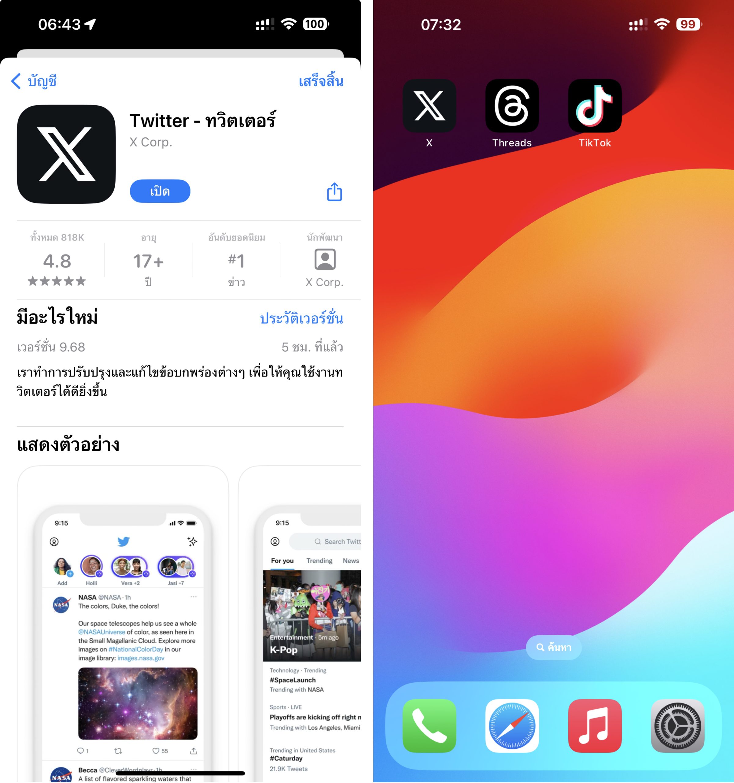 ล่าสุดช่วงเช้าของวันที่ 29 ก.ค. 2023, แอป Twitter บน iOS ก็ได้ออกอัปเดตเวอร์ชันใหม่ เปลี่ยนไอคอนนกสีฟ้ากลายเป็น X แล้ว ชื่อแอปใน App Store นั้น ยังขึ้นว่า Twitter อยู่ แต่ถ้าอัปเดตแอปใหม่ ชื่อแอปก็จะกลายเป็น X