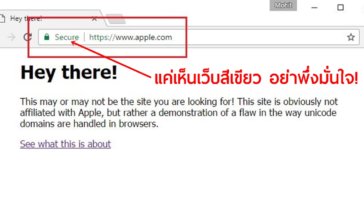 เมื่อเดือนที่แล้วทางเราได้นำเสนอบทความ เคล็ดลับการดูแลบัญชี Apple ID ให้ปลอดภัย ซึ่งหนึ่งในนั้นมีเรื่องของเว็บไซต์ปลอมที่ทำคล้ายของจริงแต่ไม่ได้เข้ารหัส SSL ซึ่งวิธีการดูเบื้องต้นคือ “กุญแจเขียว” ที่อยู่บนหน้า URL นั่นเอง