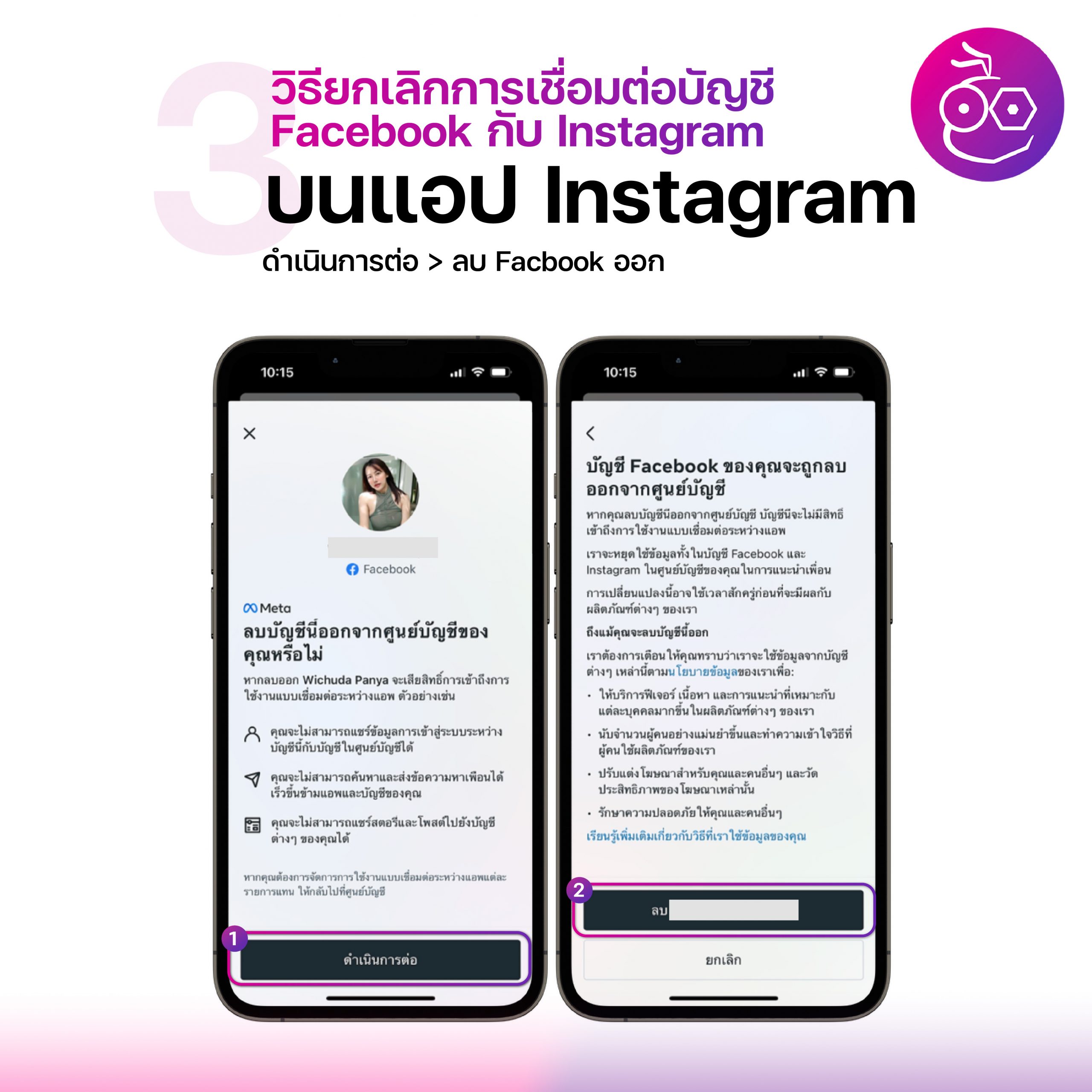 ผู้ใช้ Facebook หรือ Instagram ไม่ต้องการให้สองแพลตฟอร์มผูกหรือเชื่อมต่อกัน สามารถยกเลิกการเชื่อมต่อได้ อัปเดตปี 2022 โดยสามารถทำตามขั้นตอนดังต่อไปนี้
