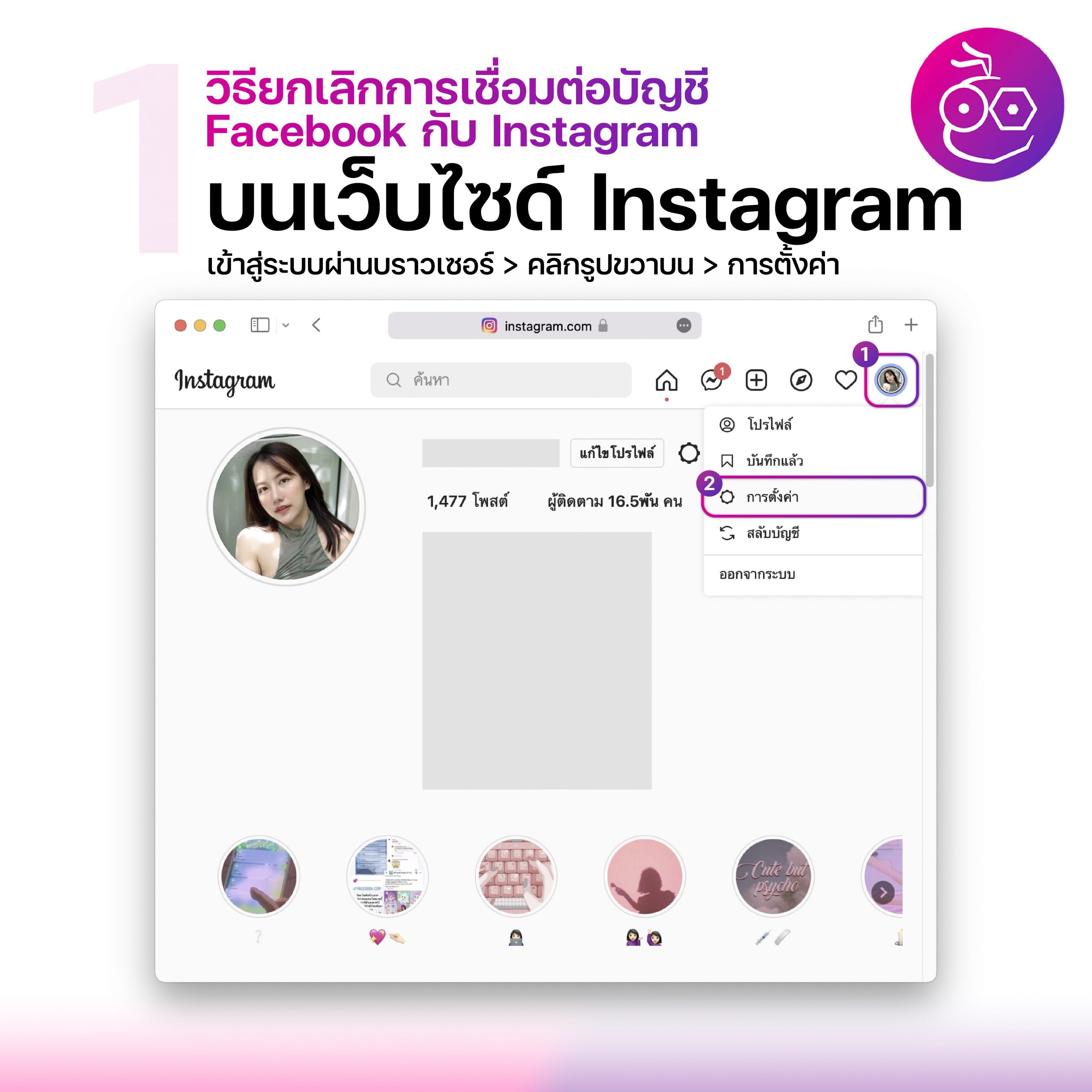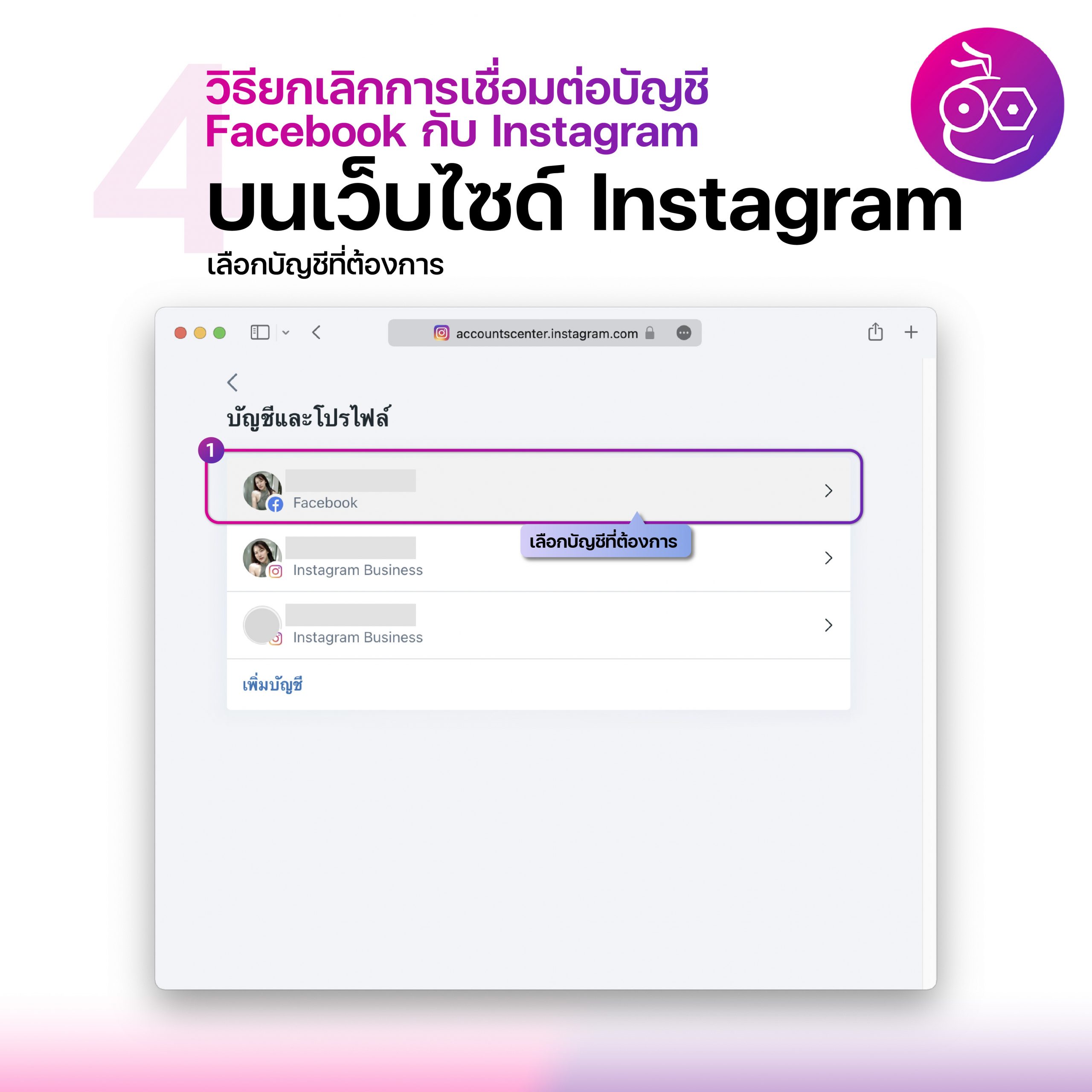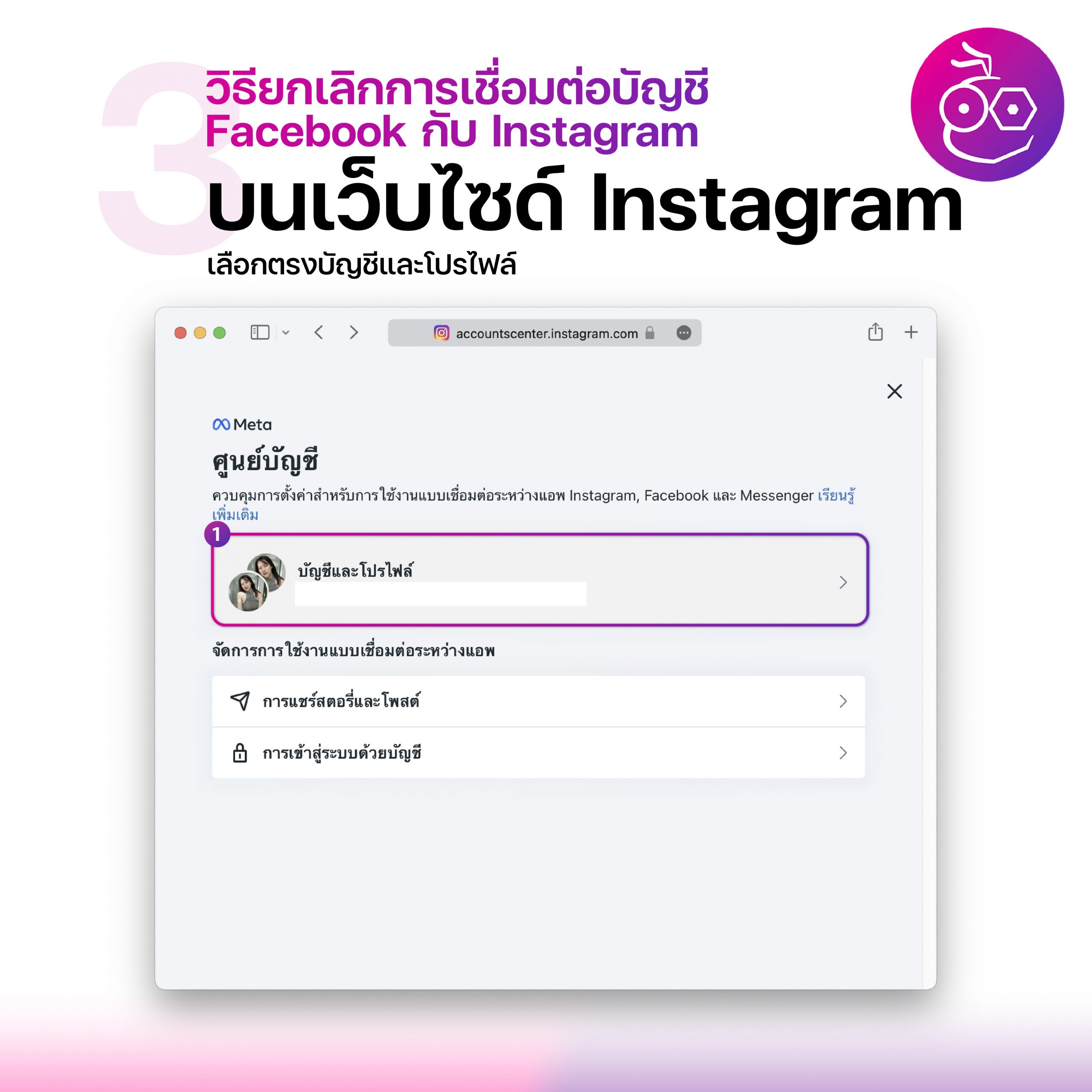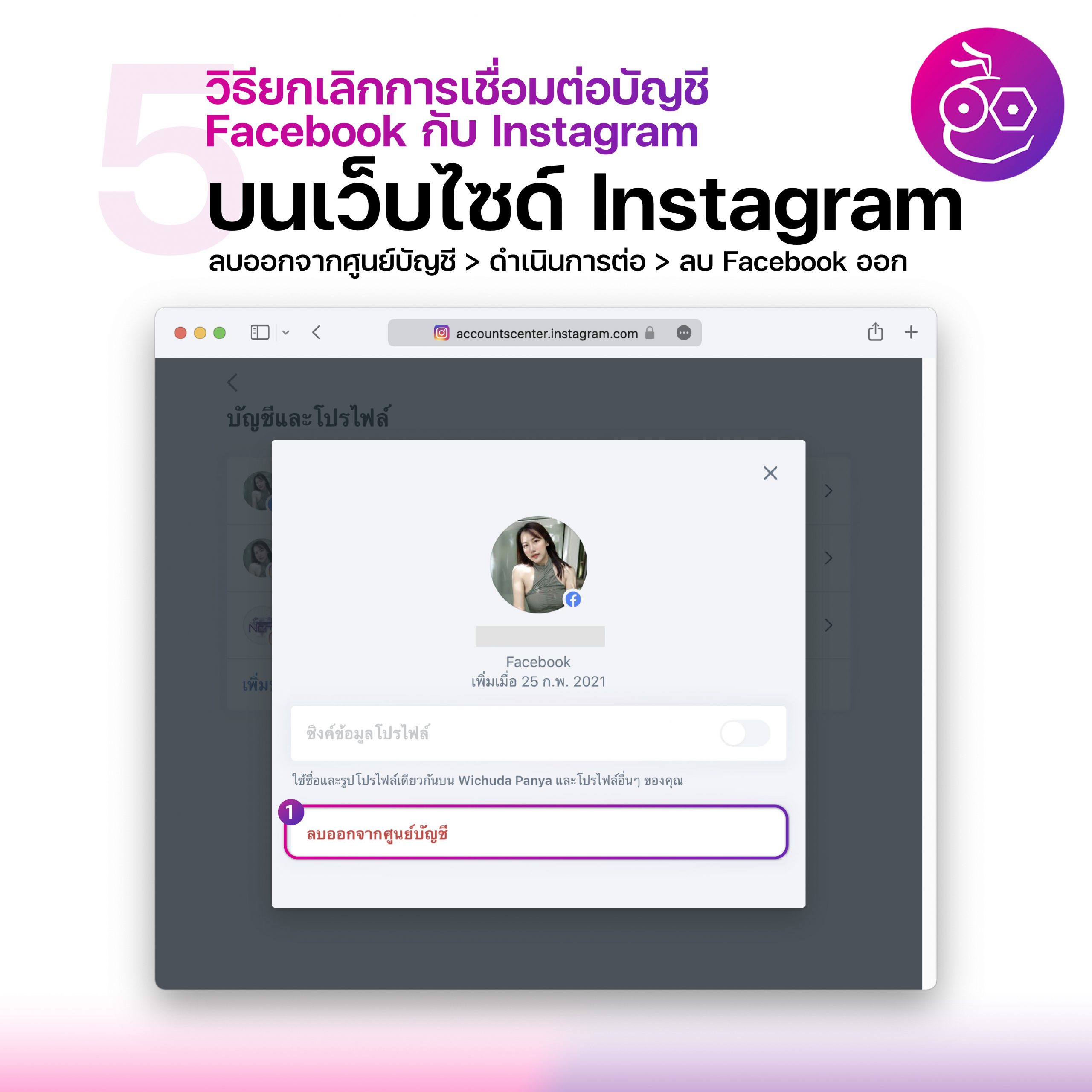 วิธียกเลิกการเชื่อมต่อบัญชี Facebook กับ Instagram บนเว็บไซด์Instagram